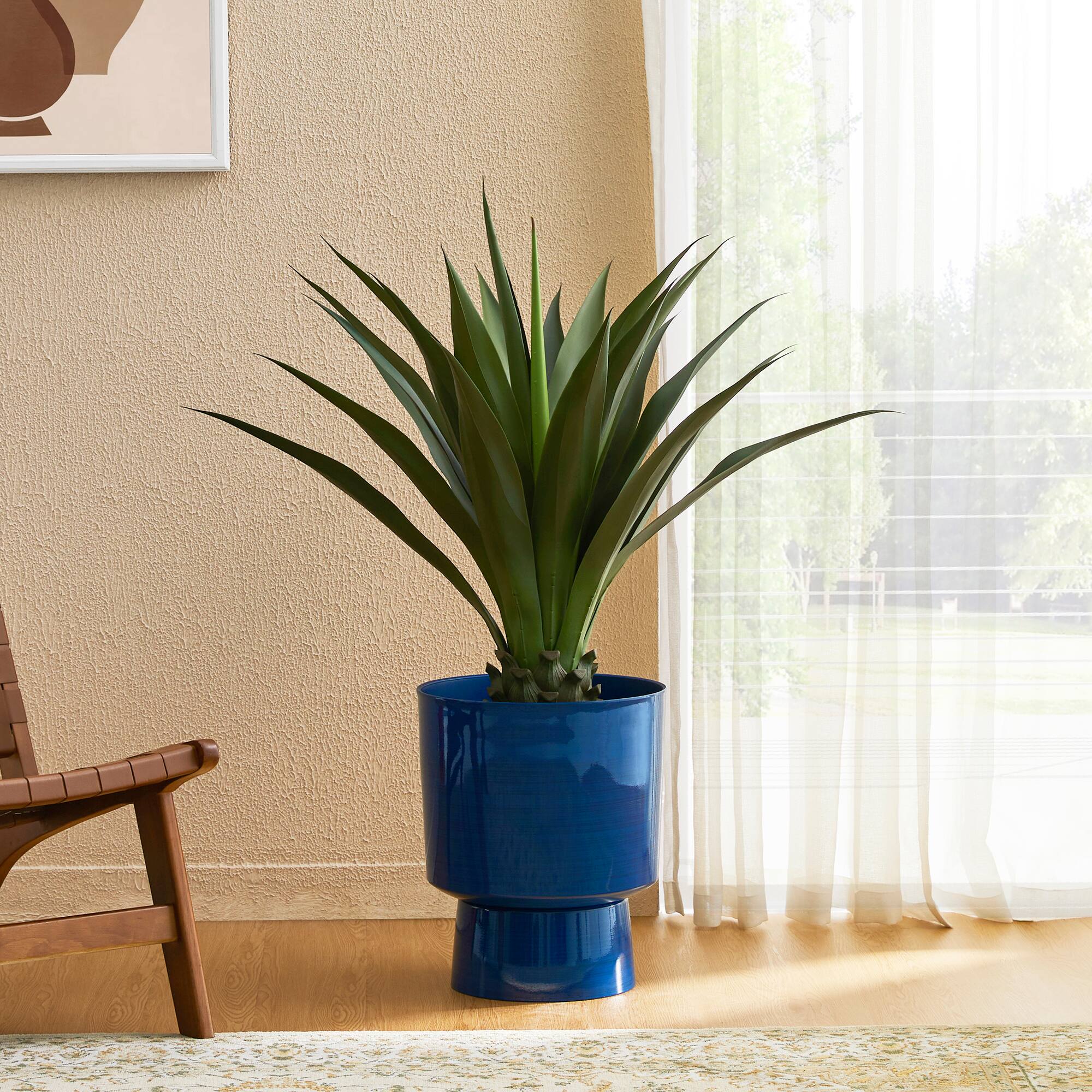 Glitzhome® 16.75" Cobalt Blue Faux Ceramic Urn Plastic Planters, 2ct.