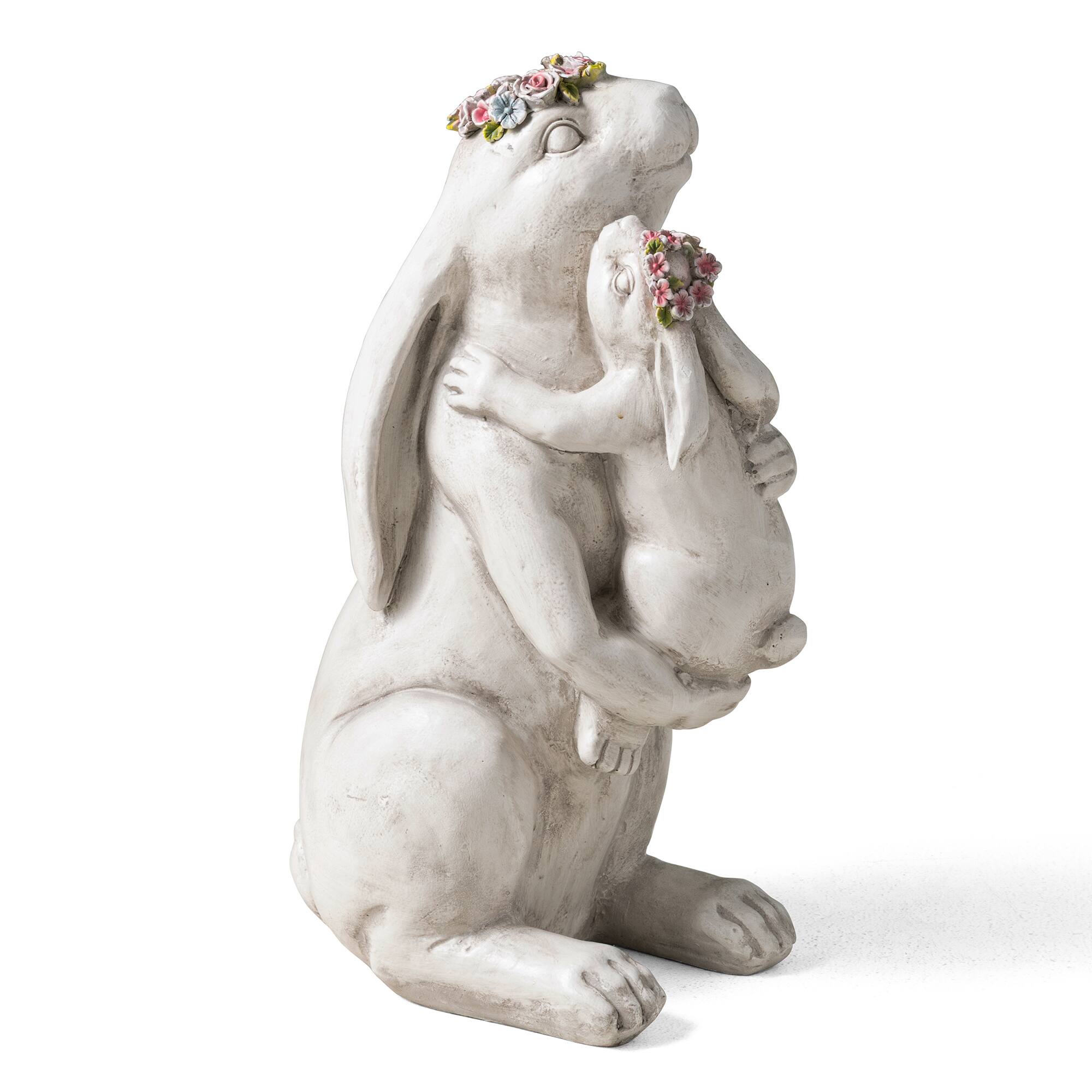 Glitzhome® 17" MGO Hugging Mom and Baby Rabbit Statue