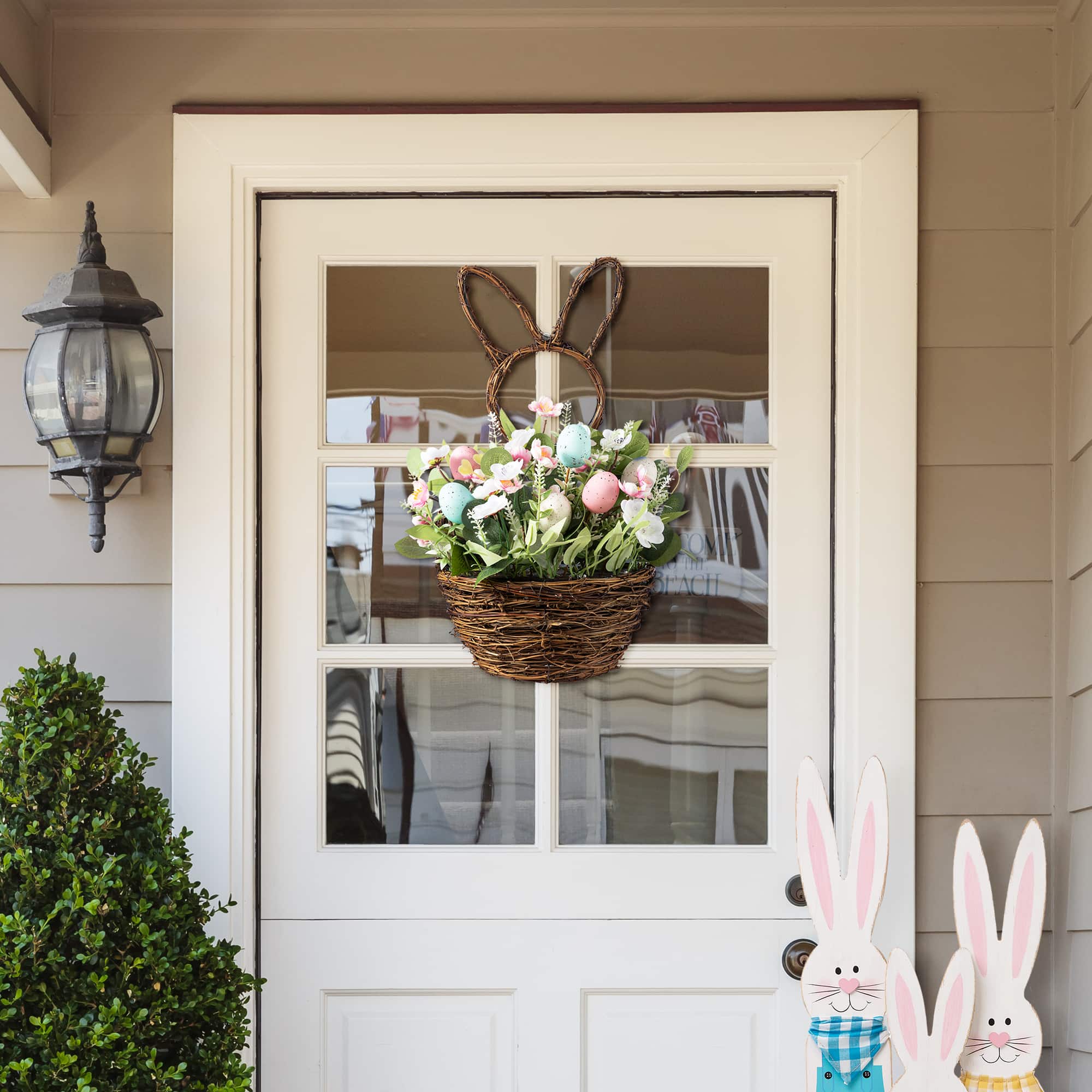 Glitzhome® 18" Easter Egg & Flower Bunny-Shaped Basket Centerpiece