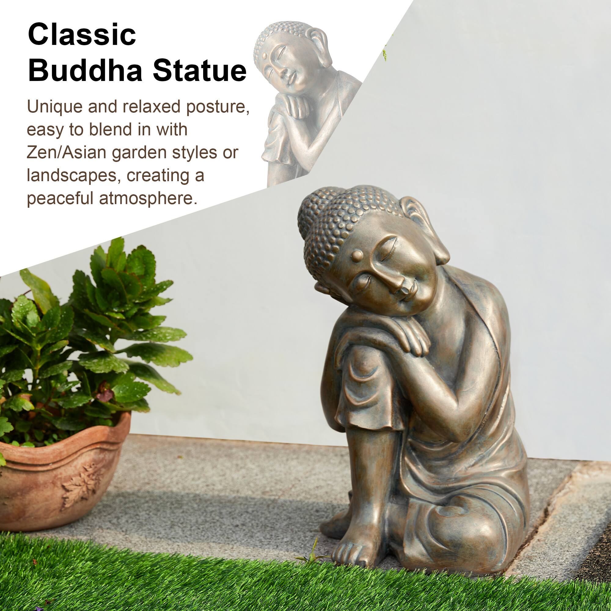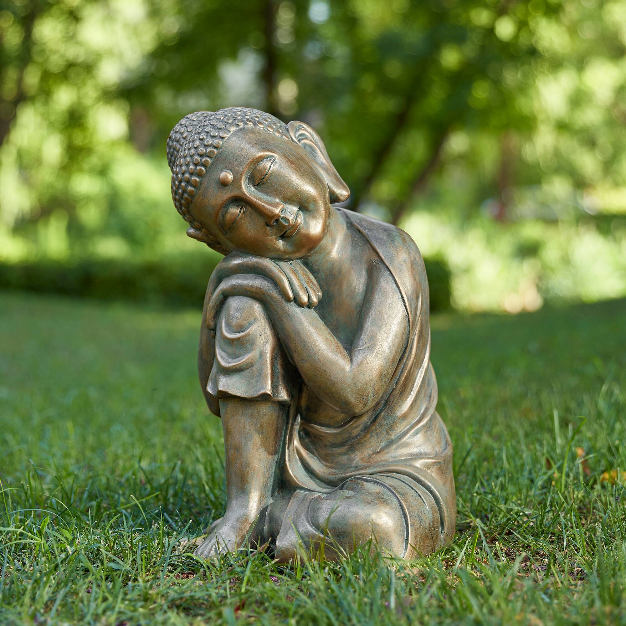Glitzhome® 18" Faux Bronze Resting Buddha Garden Statue