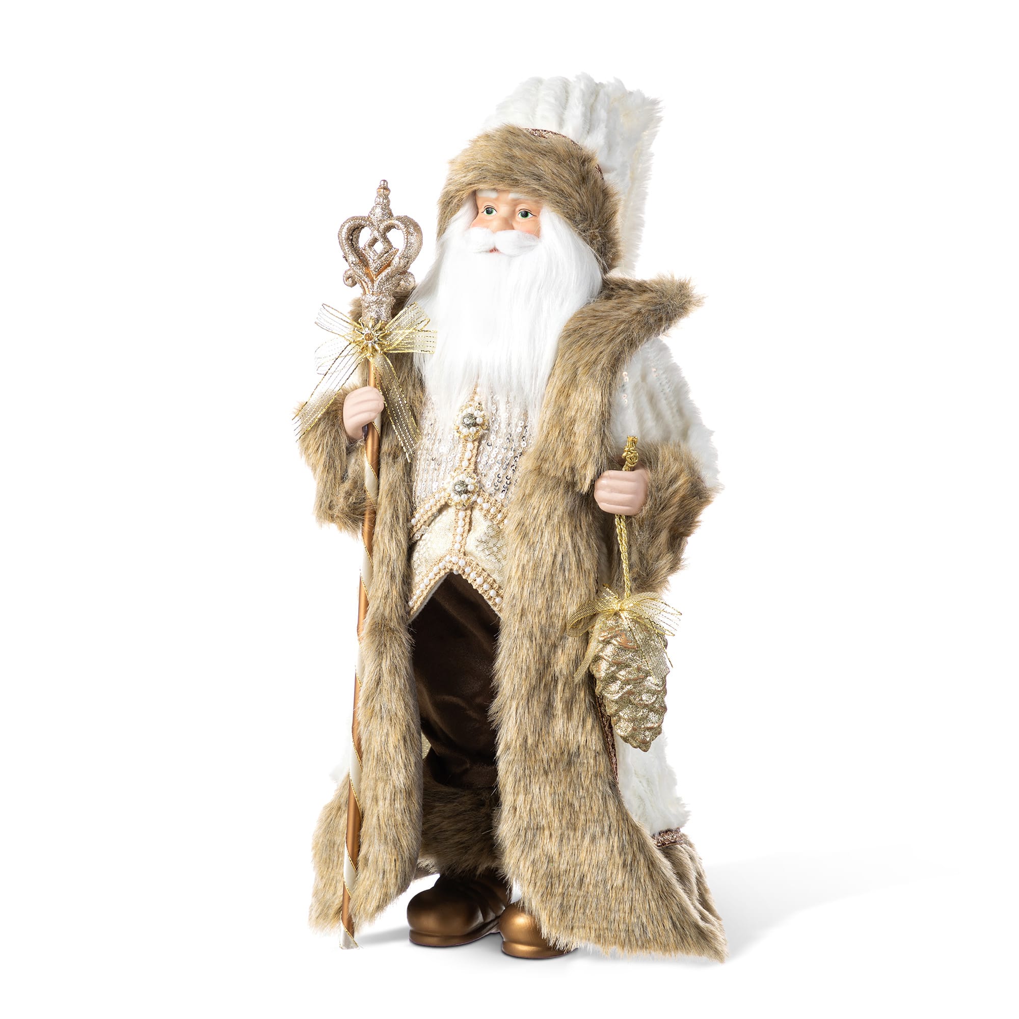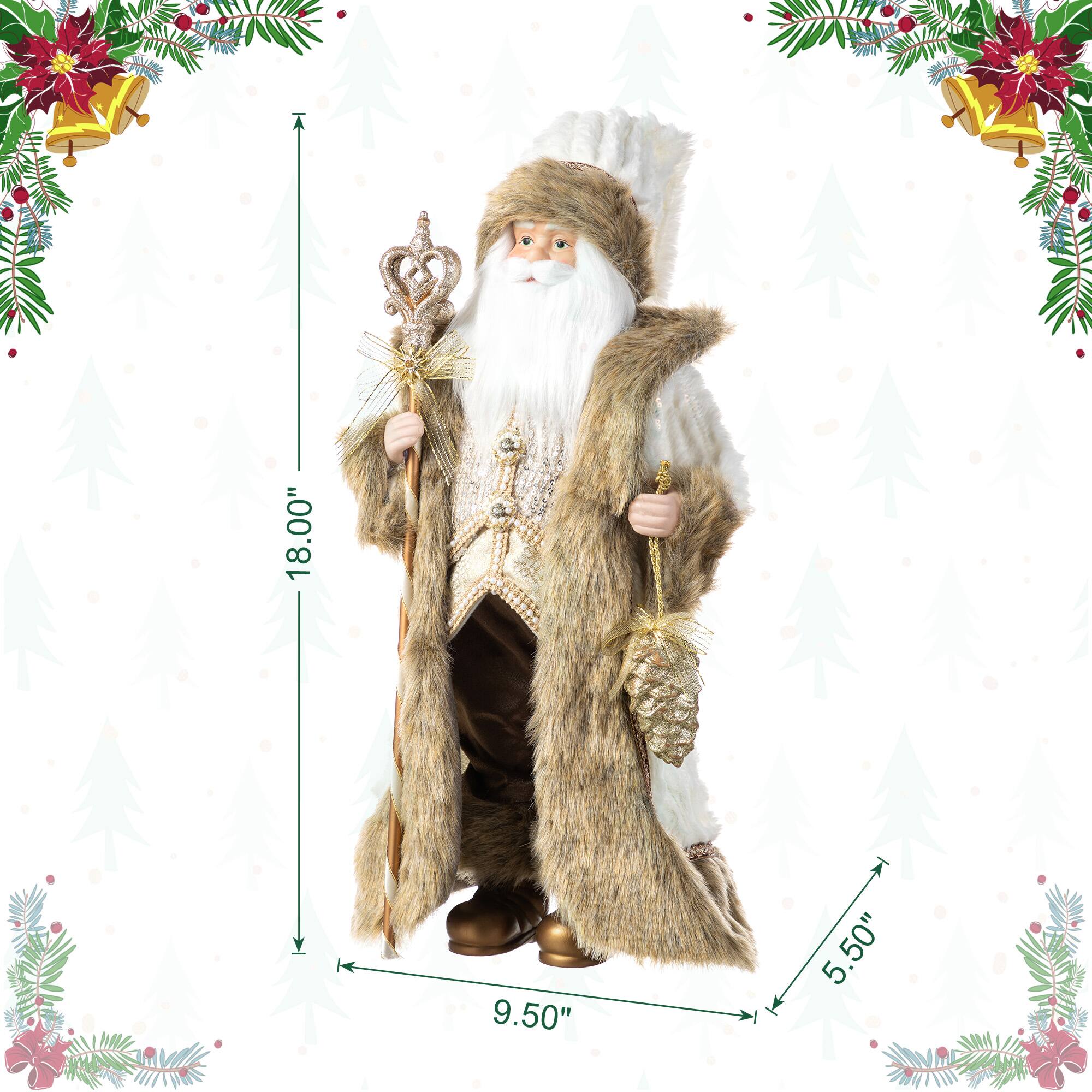 Glitzhome® 18"H Faux Fur Christmas Brown Woodland Santa Figurine with Porcelain Face