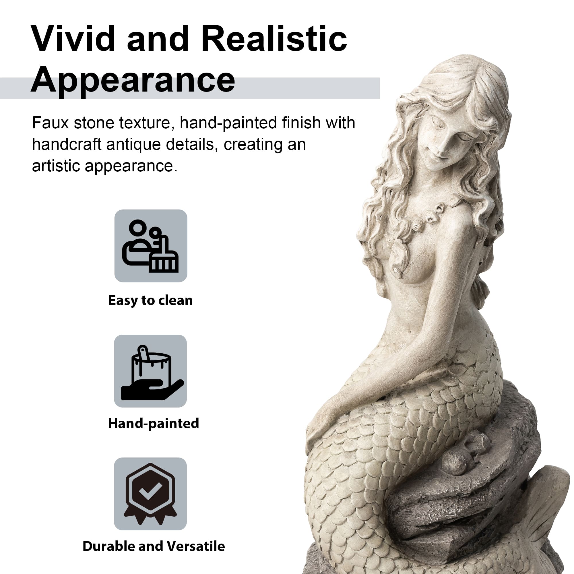 Glitzhome® 20" MGO Mermaid Garden Statue