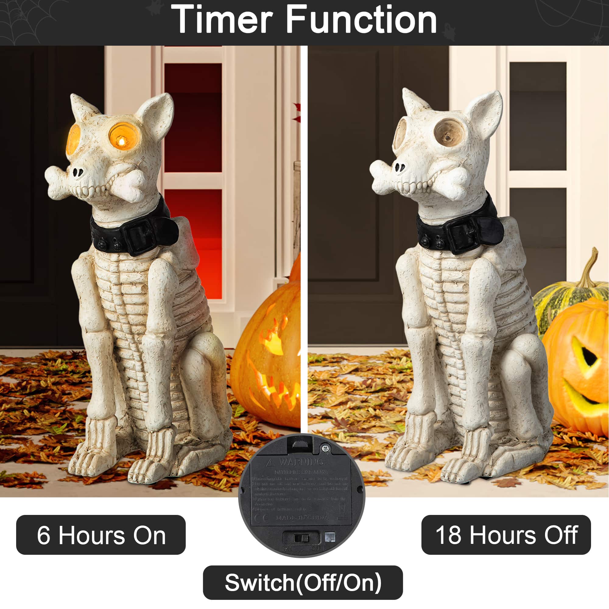 Glitzhome® 20.5" Lighted Halloween Skeleton Dog Porch Décor with Timer