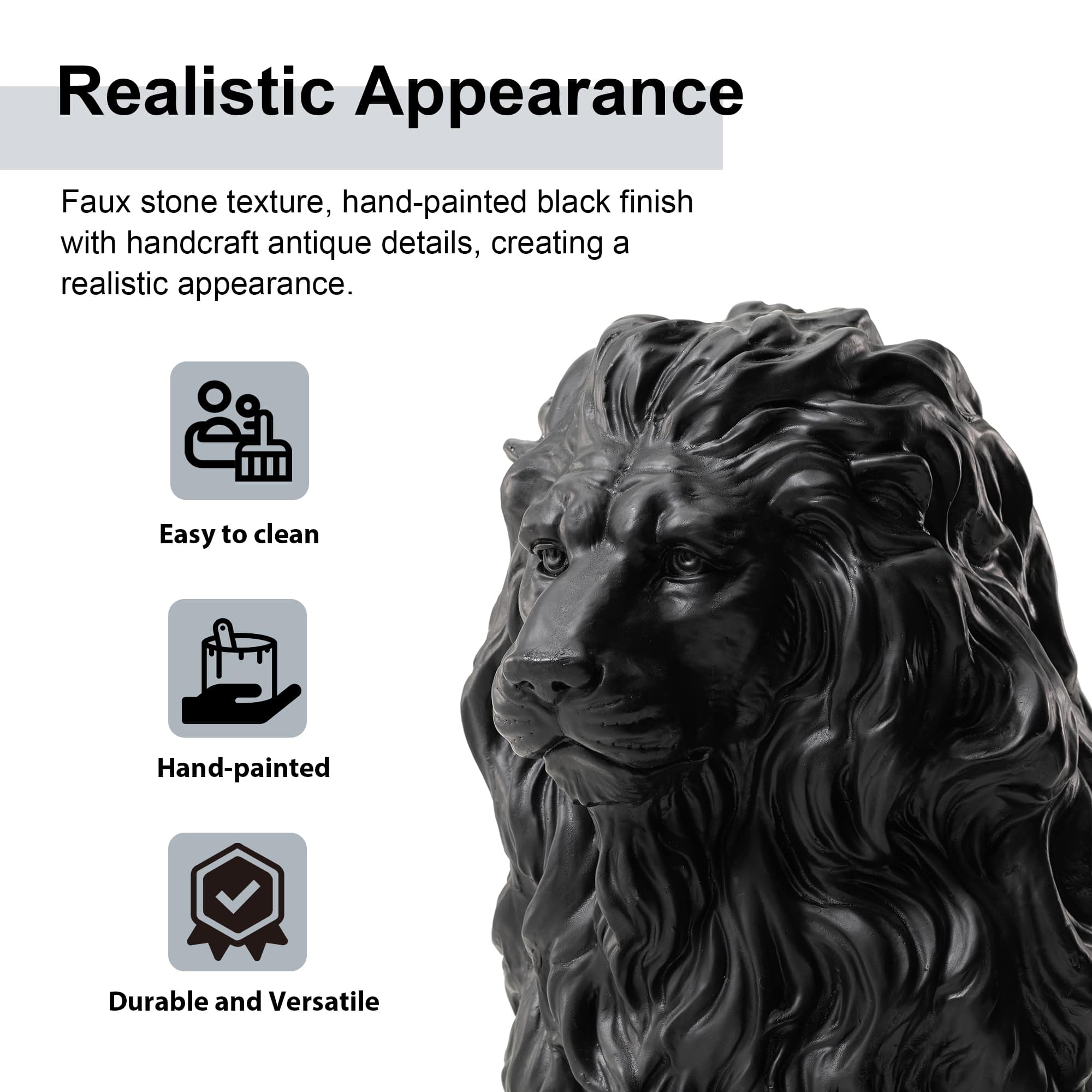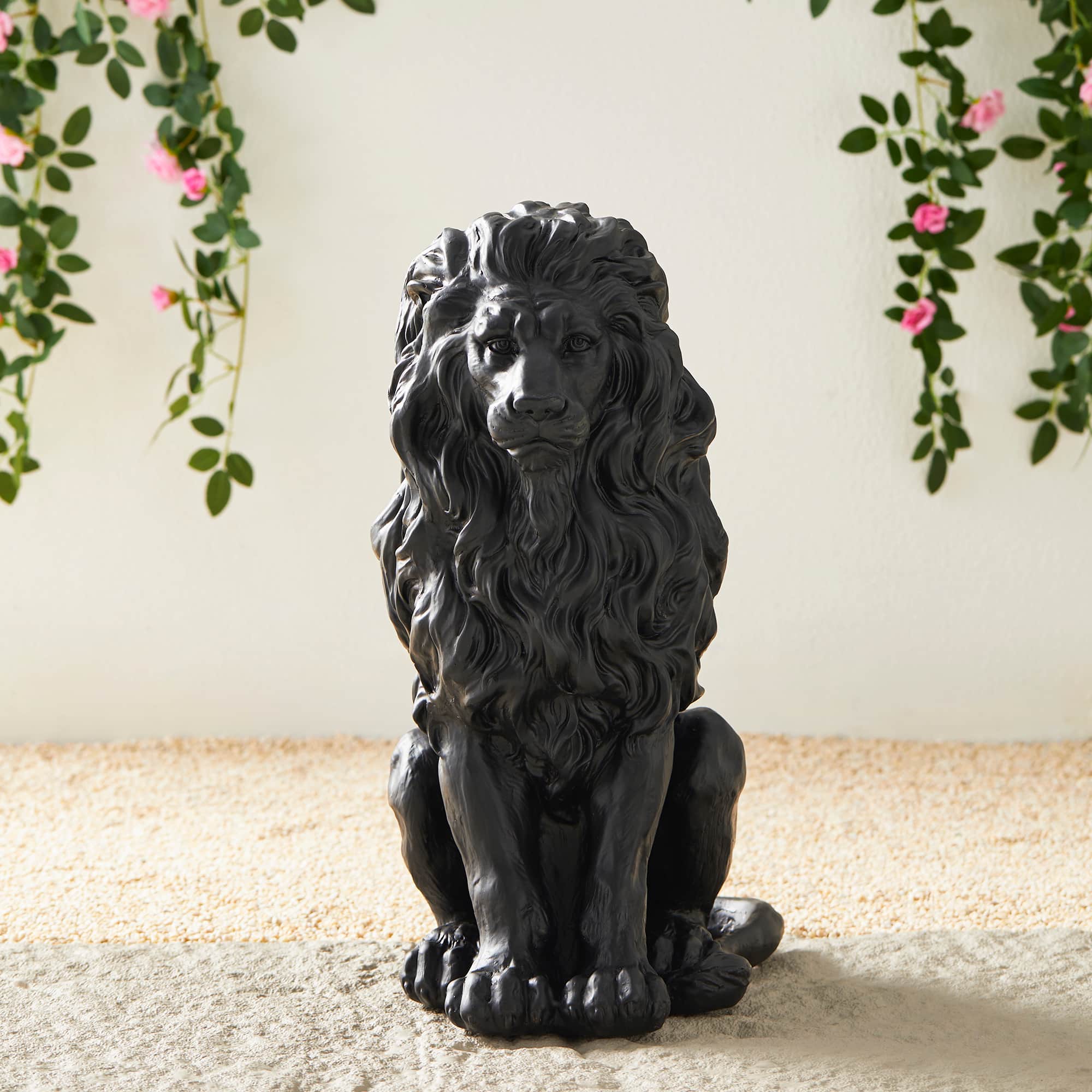 Glitzhome® 21" Black Sitting Lion Garden Statue