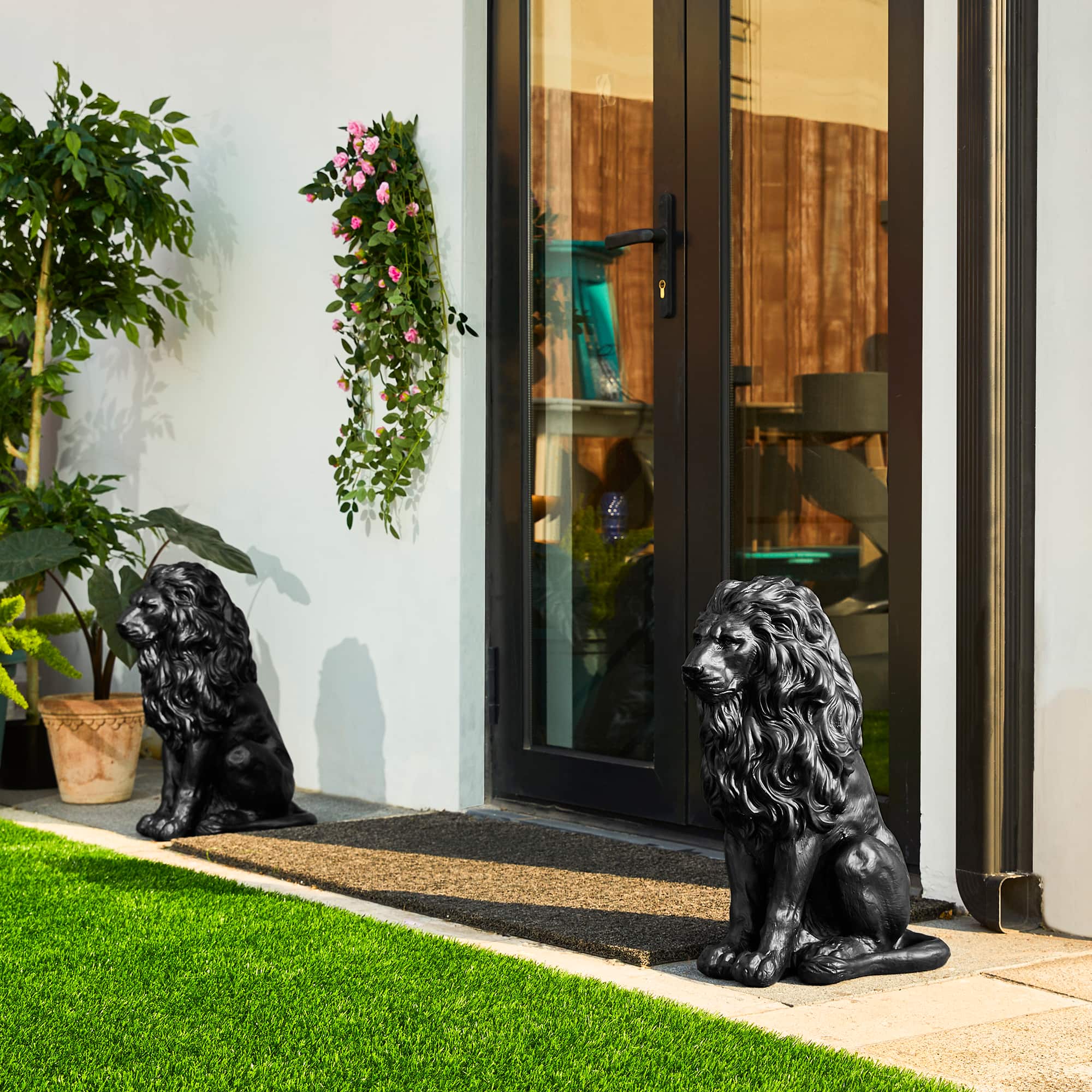 Glitzhome® 21" Black Sitting Lion Garden Statue