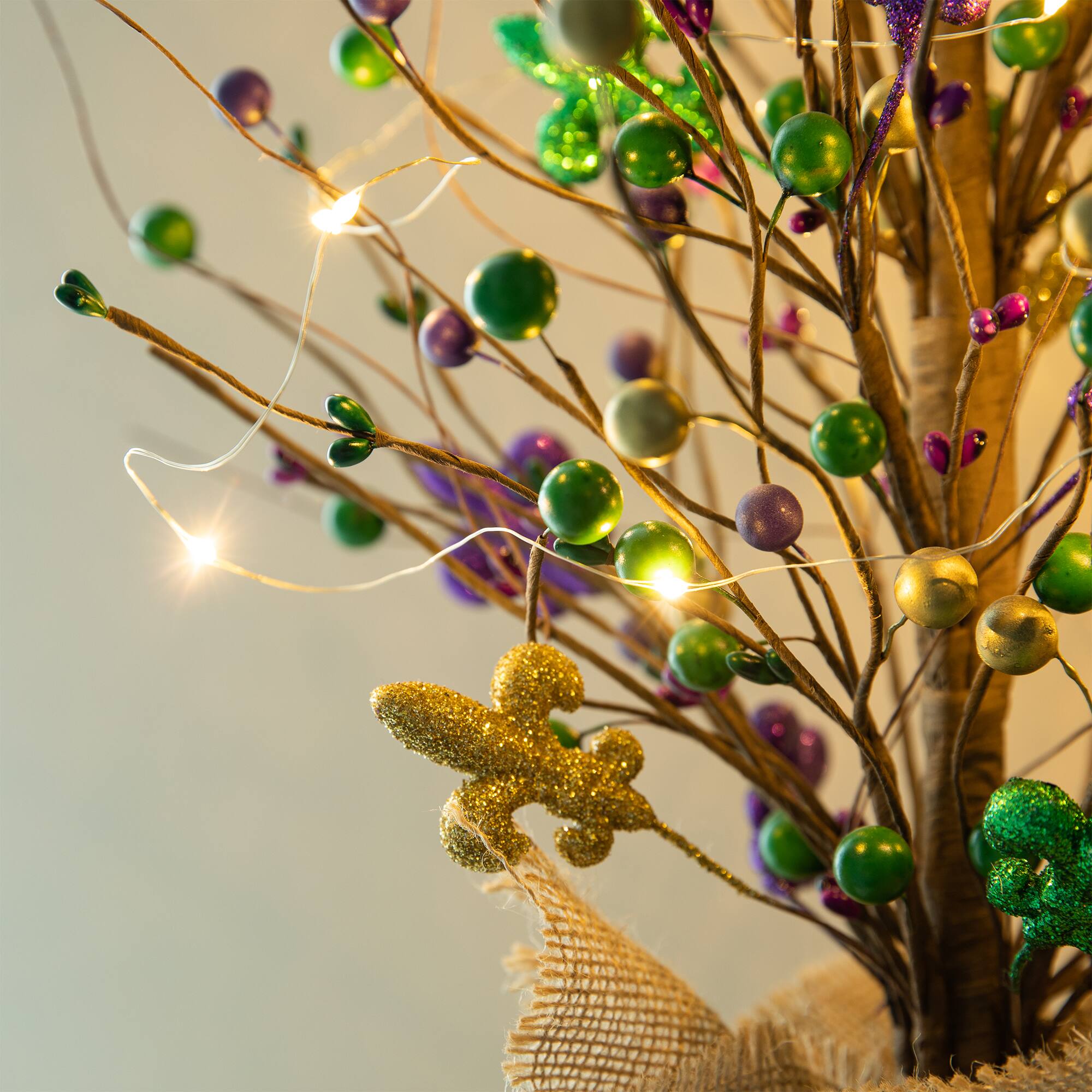Glitzhome® 21" Lighted Mardi Gras Fleur-de-Lis & Berry Table Tree