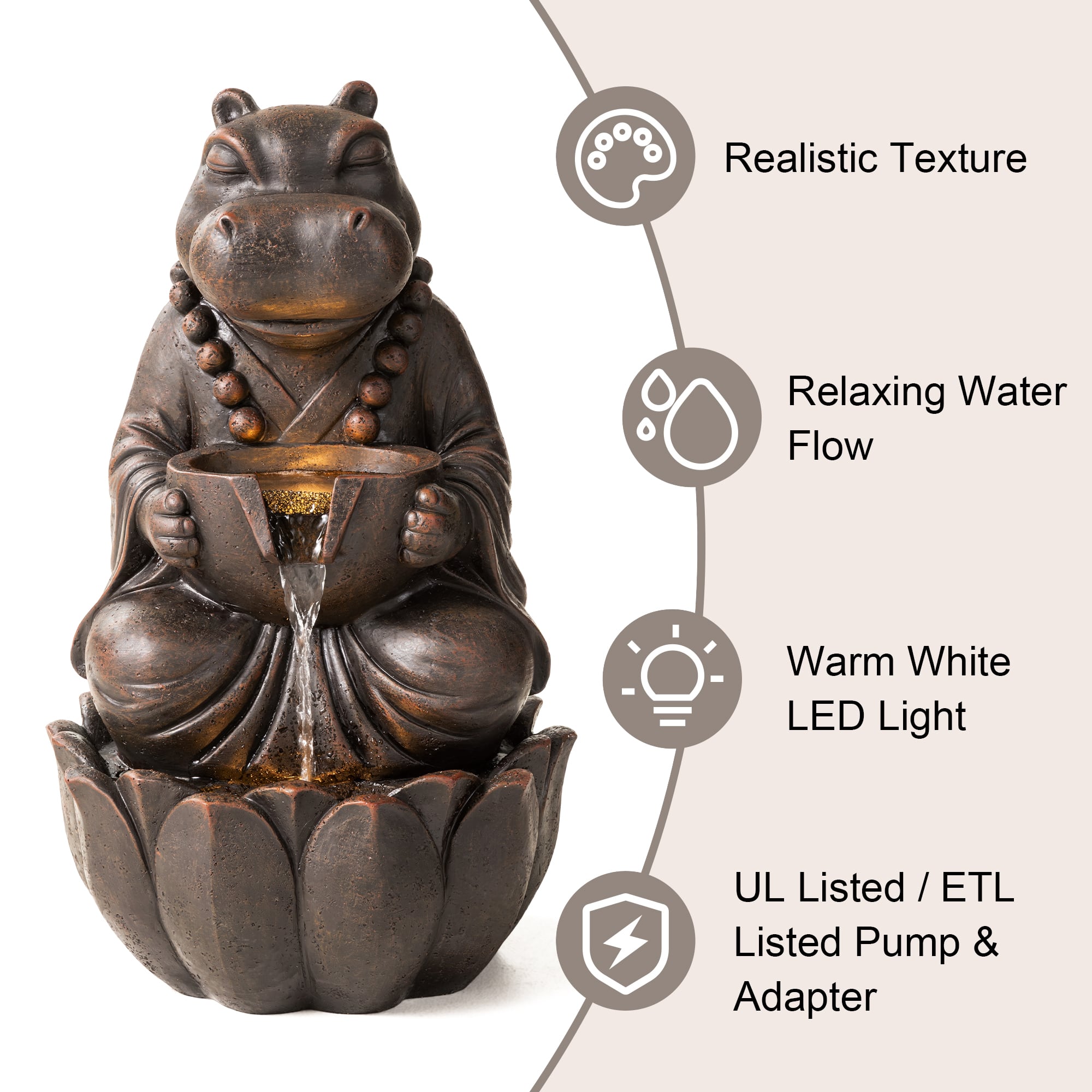 Glitzhome® 21.75" Zen-Style LED 2-Tier Bronze Hippo Outdoor Fountain