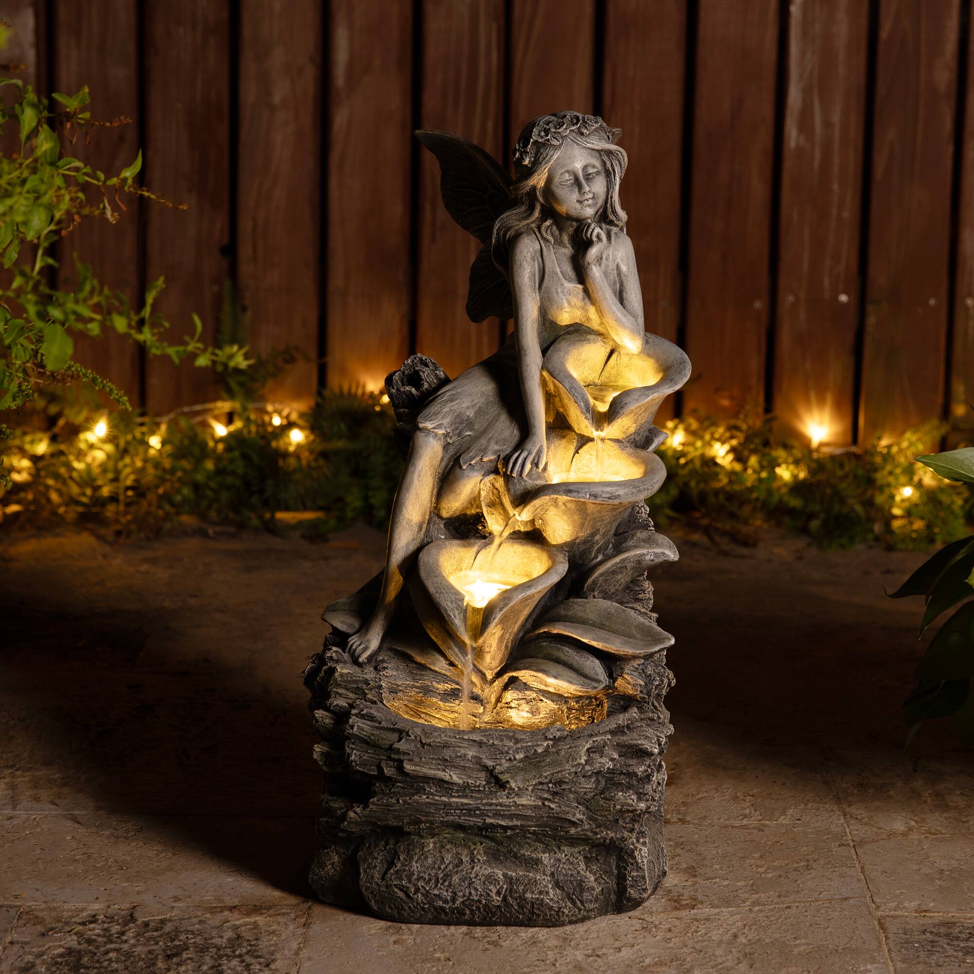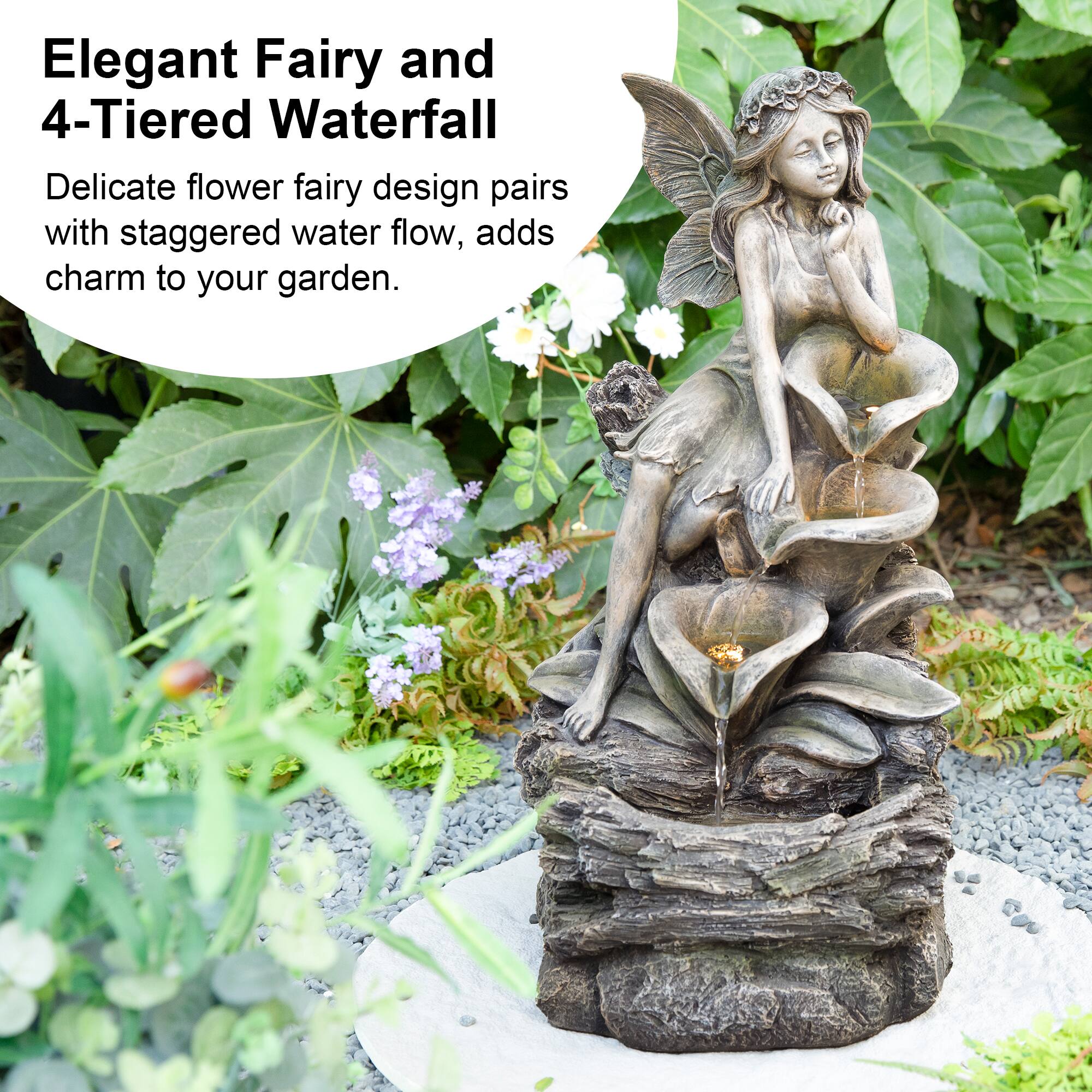 Glitzhome® 22.75" LED 4-Tier Concrete Fairy Outdoor Fountain