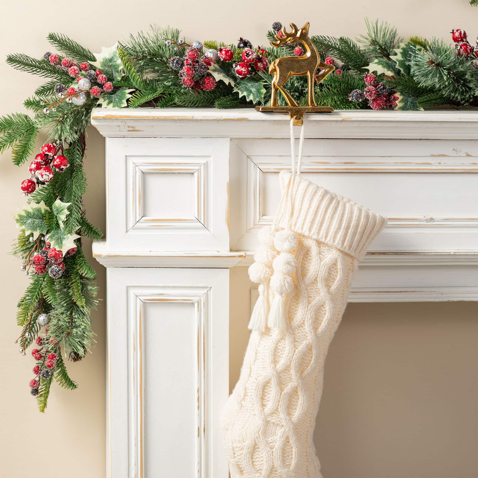 Glitzhome® 22"L White Knitted Christmas Stocking with Pom-Pom Tassel