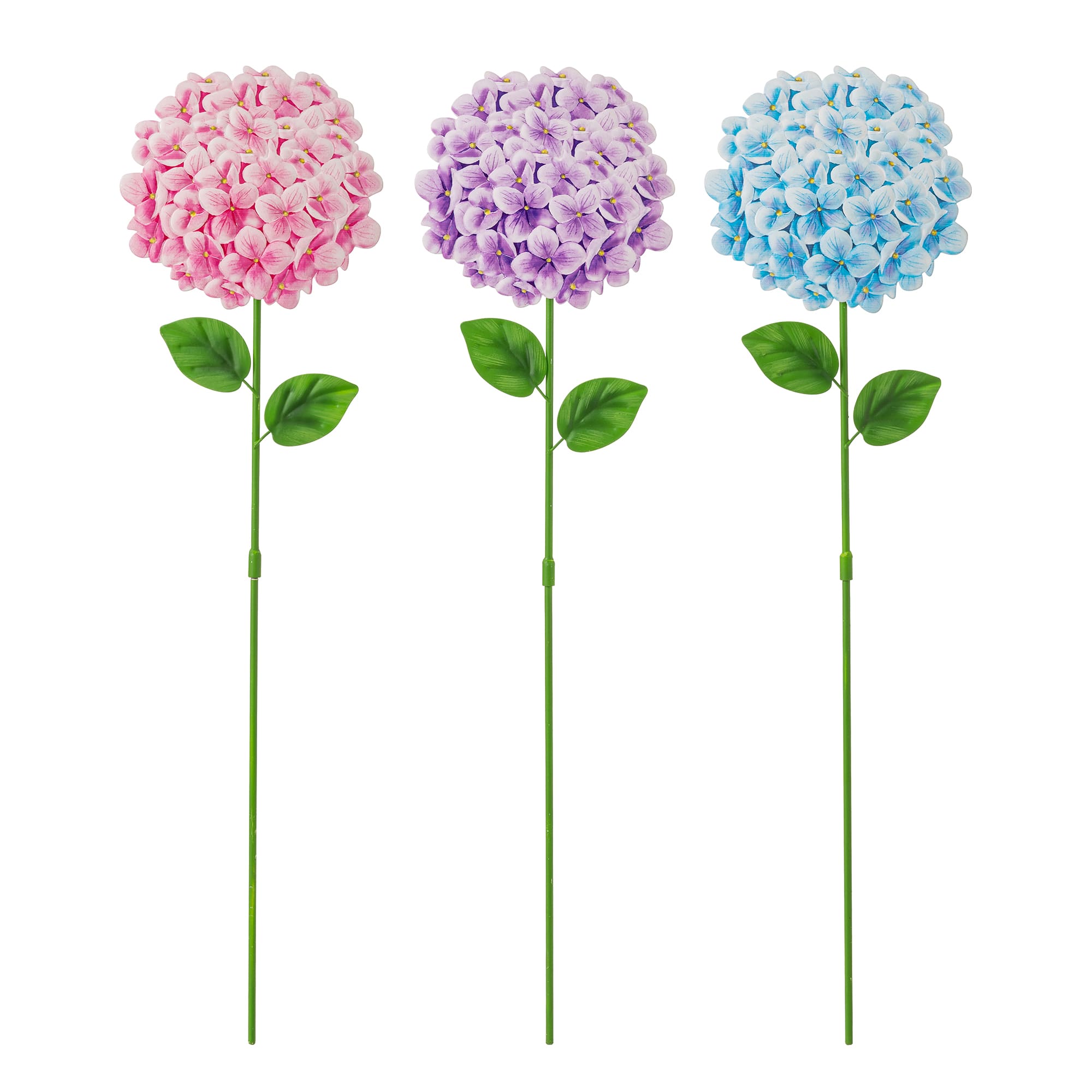 Glitzhome® 24" 2-in-1 Set of 3 Painted Metal Hydrangea Garden Yard Stakes & Wall Decor