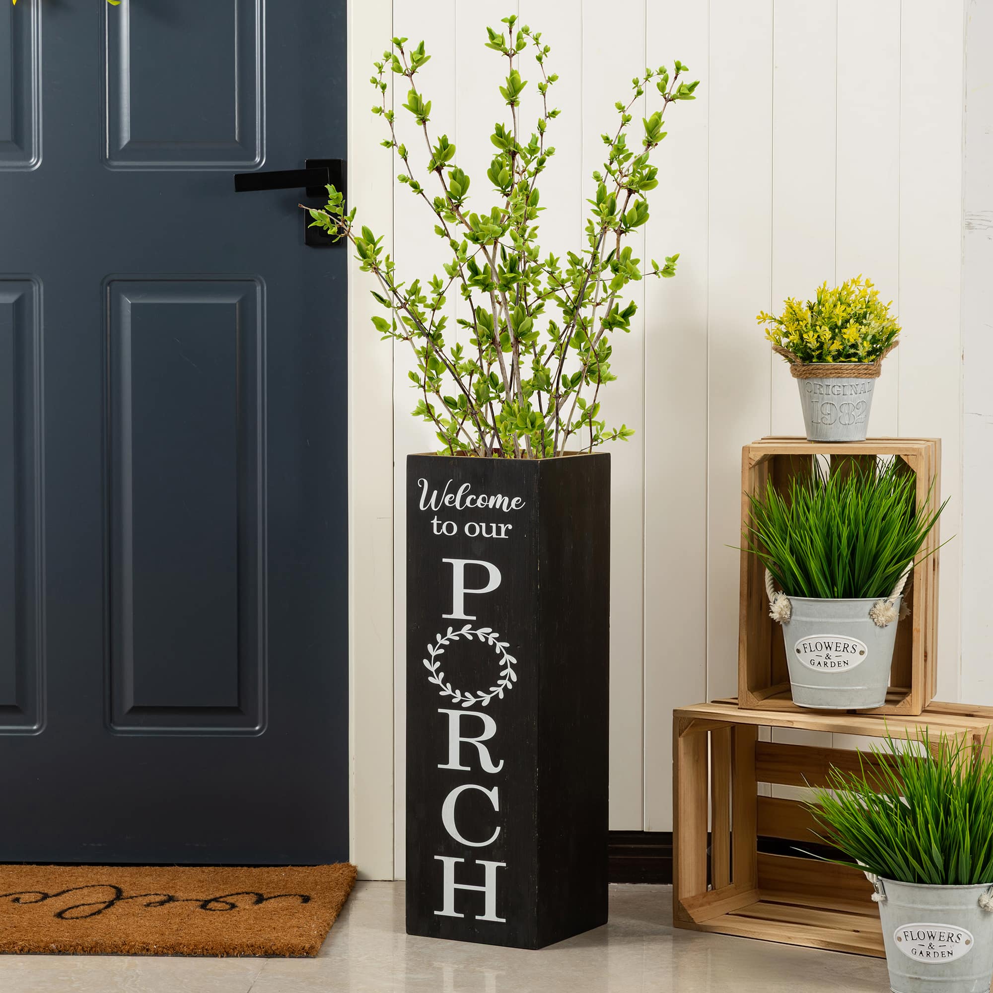 Glitzhome® 24" Double-Sided Solid Wood Black Boxed "WELCOME PORCH" Porch Sign