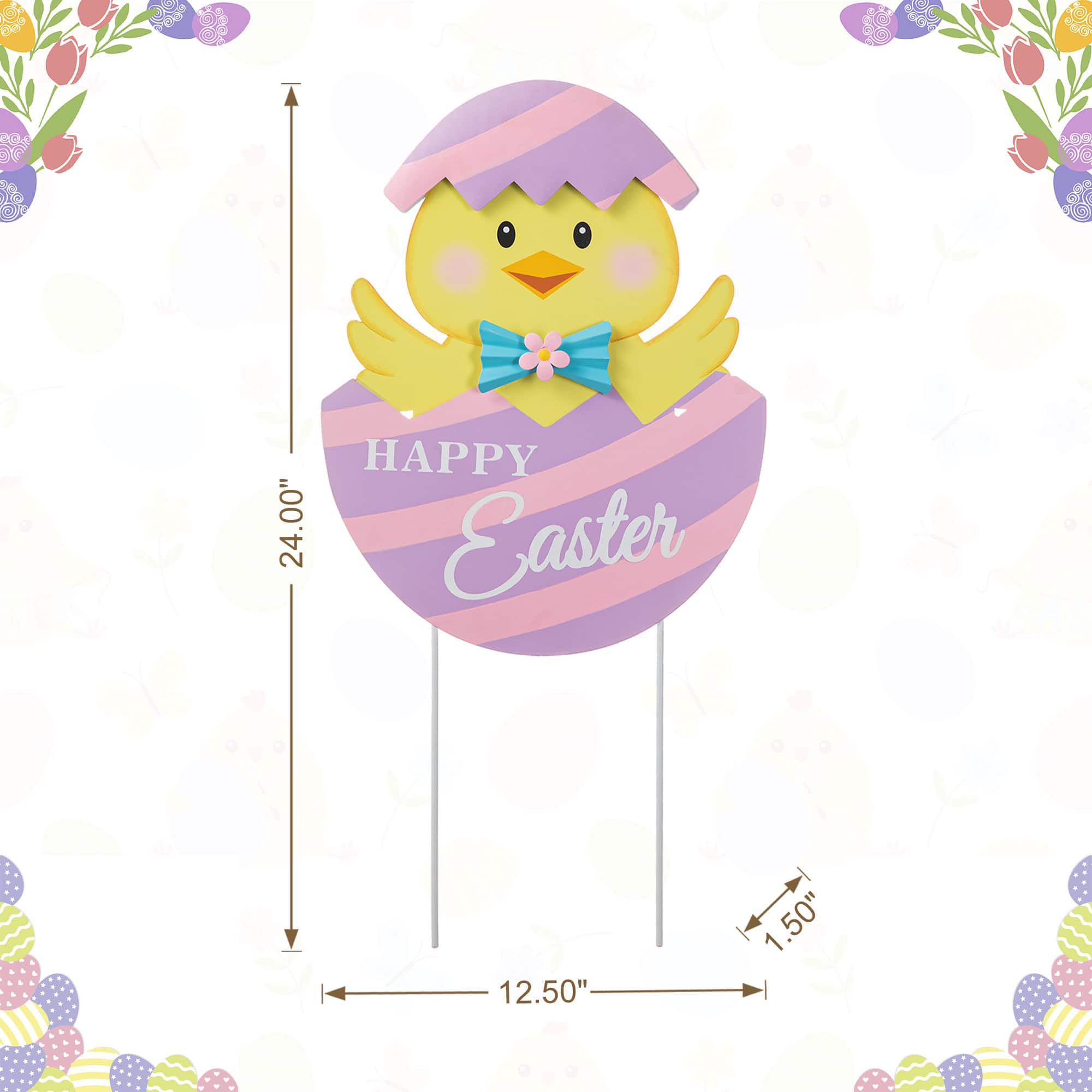Glitzhome® 24" Easter Metal Chick Egg Yard Stake