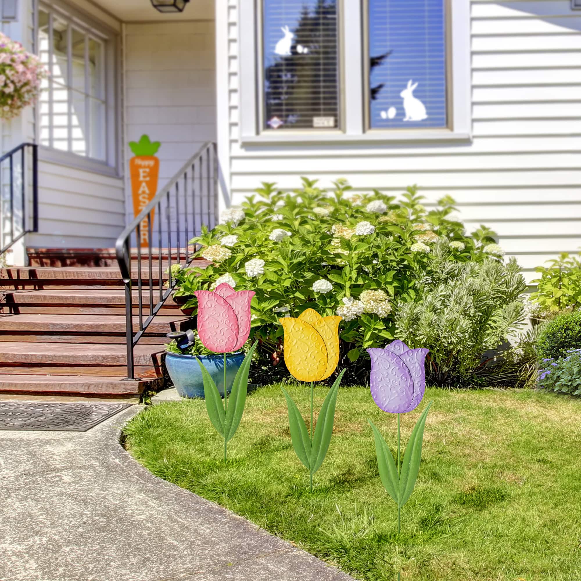 Glitzhome® 24" Easter Metal Tulips Yard Stake Set