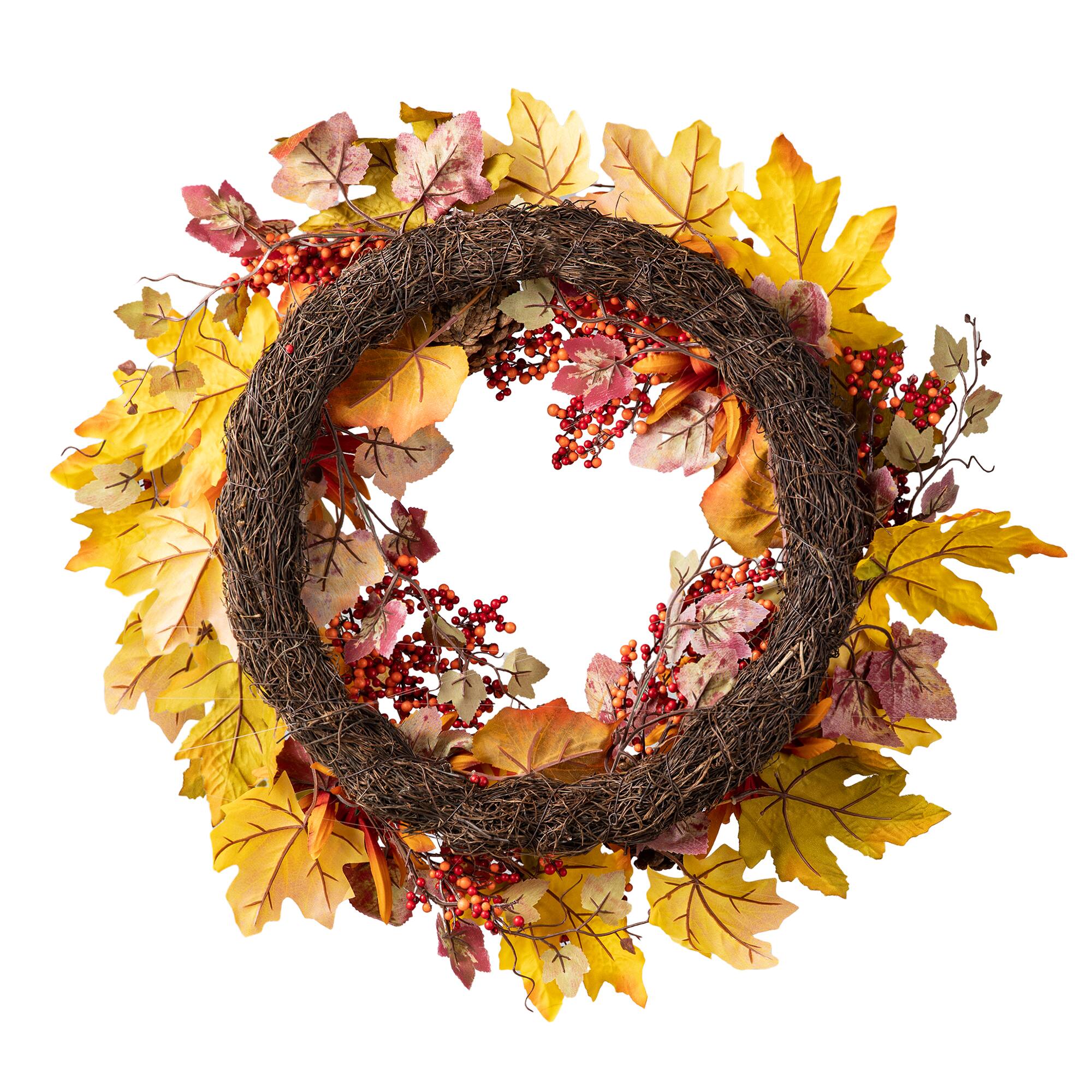 Glitzhome® 24" Fall Dahlia, Pumpkin, Leaf & Berry Wreath
