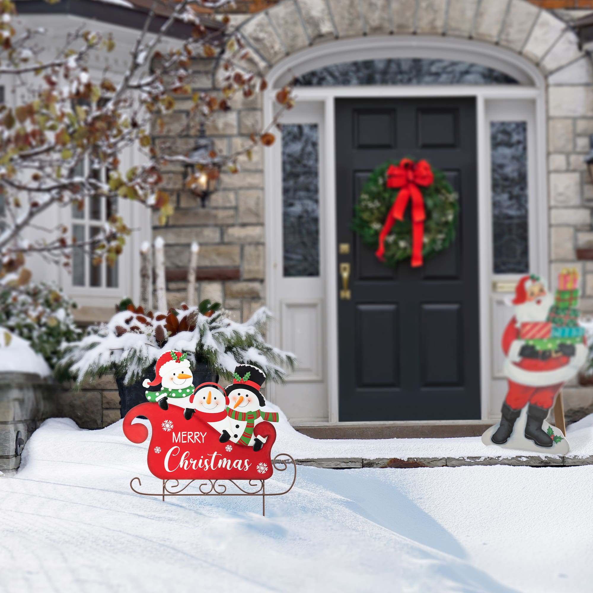 Glitzhome® 24" Metal Snowmen Riding Sleigh Yard Stake