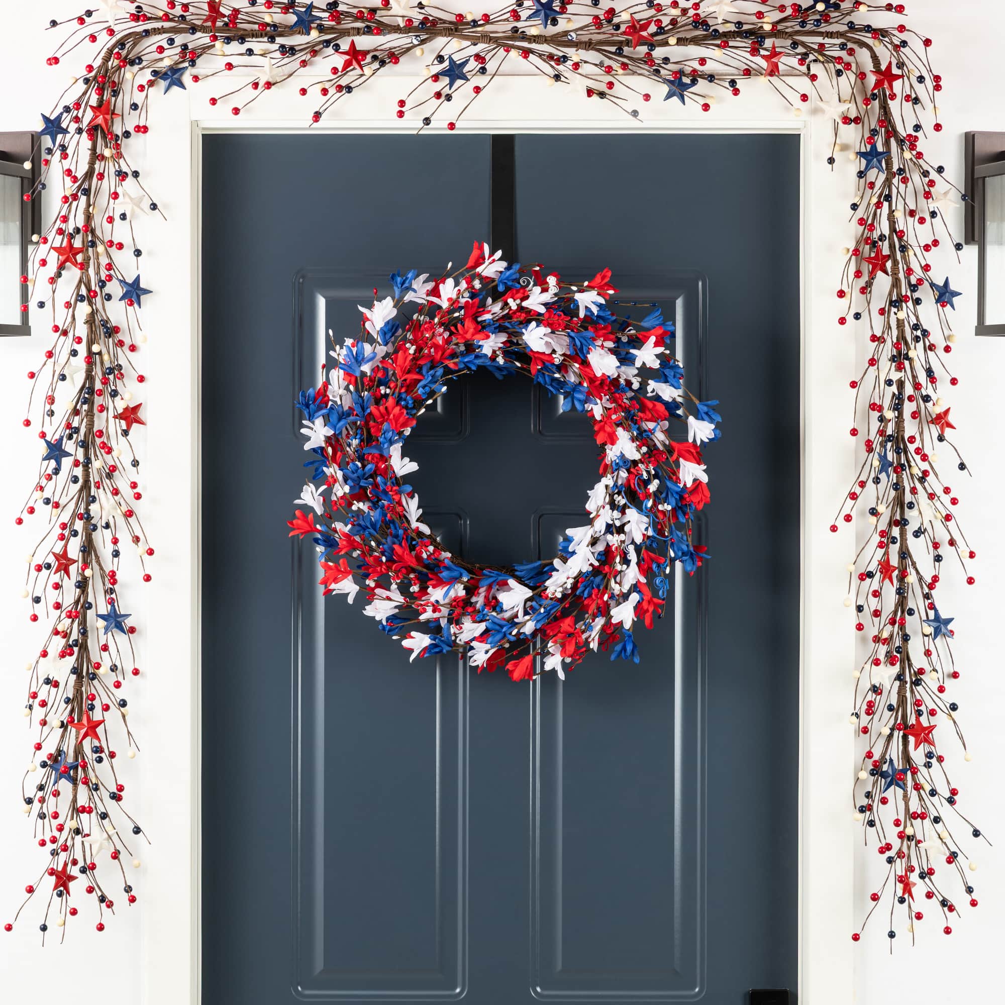 Glitzhome® 24" Patriotic Americana Red, White & Blue Floral Wreath
