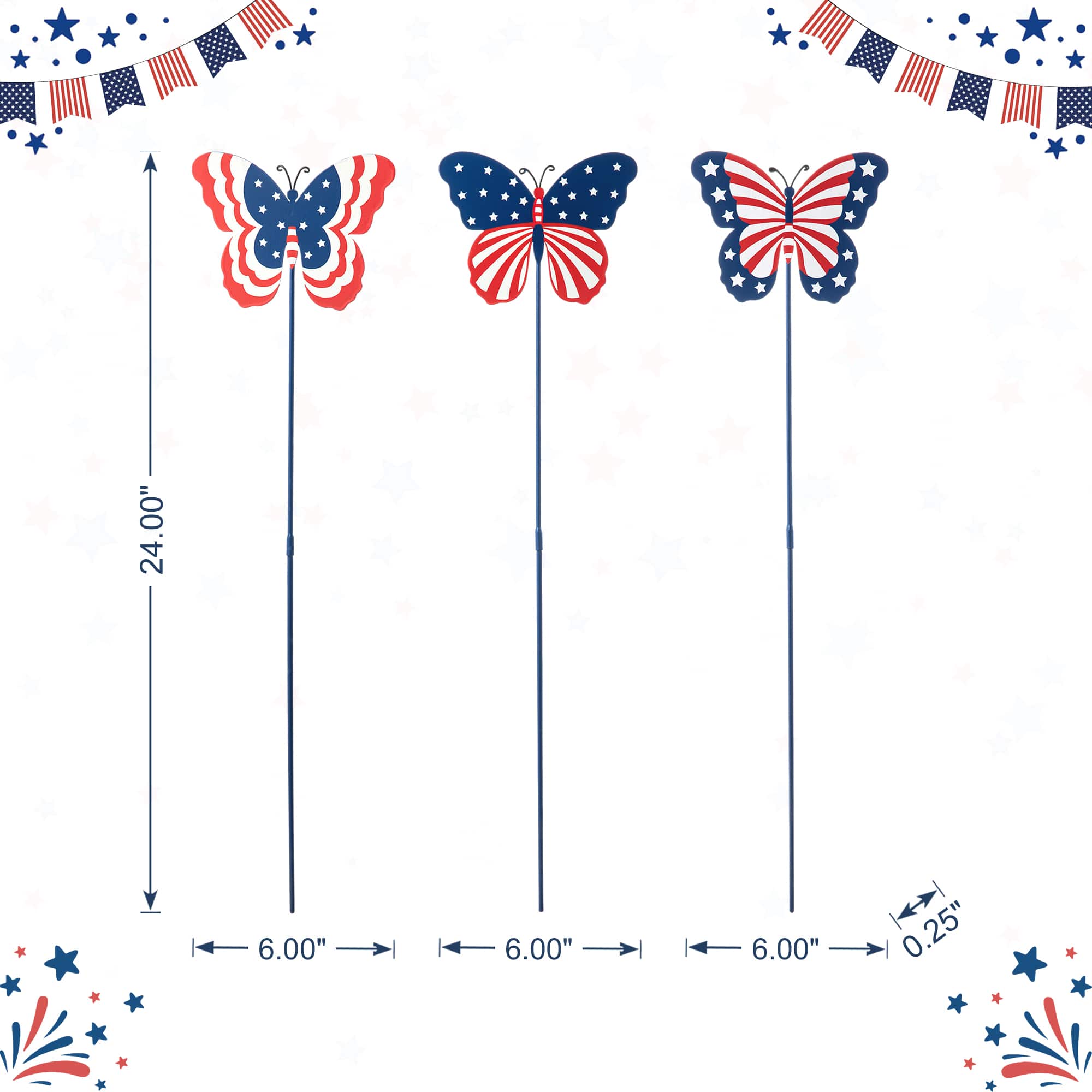 Glitzhome® 24" Patriotic Butterfly Yard Stake Set