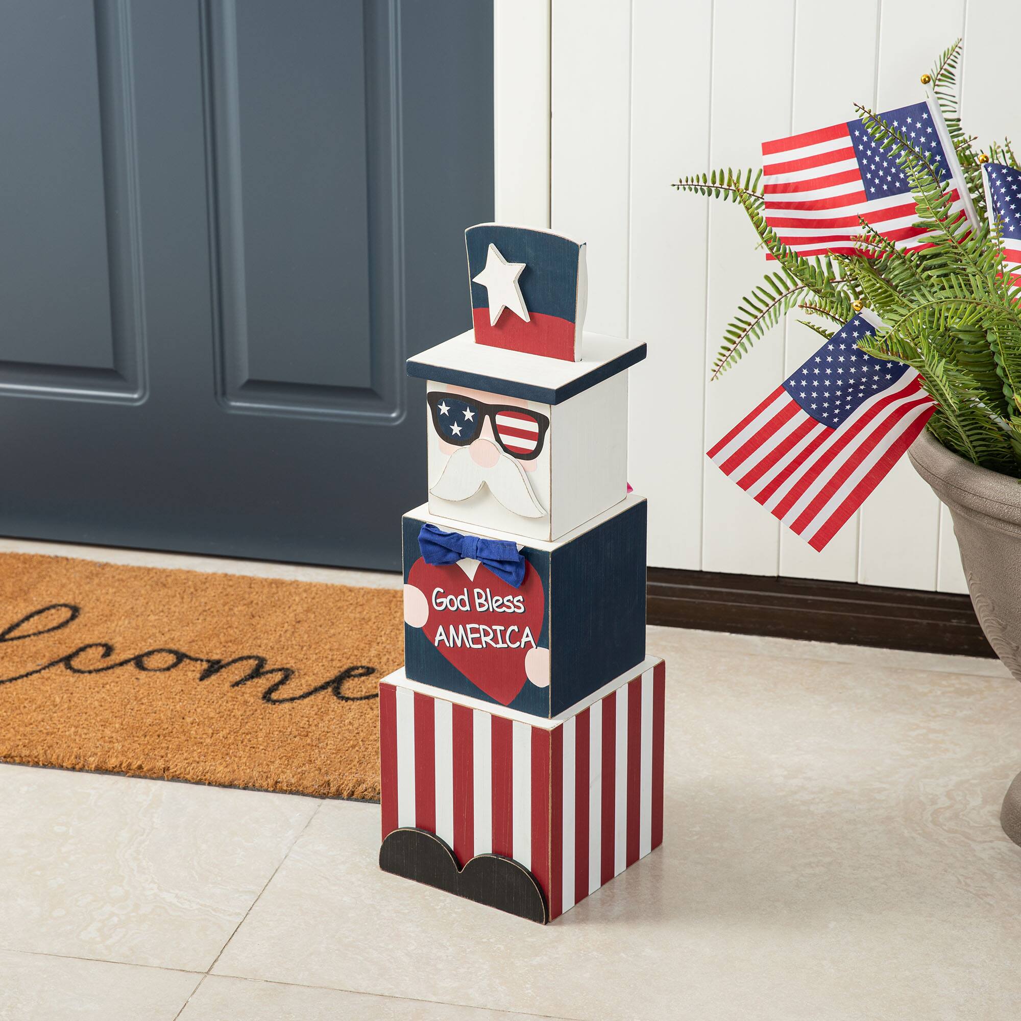 Glitzhome® 24" Wooden Double Sided Easter & July 4th Porch Décor