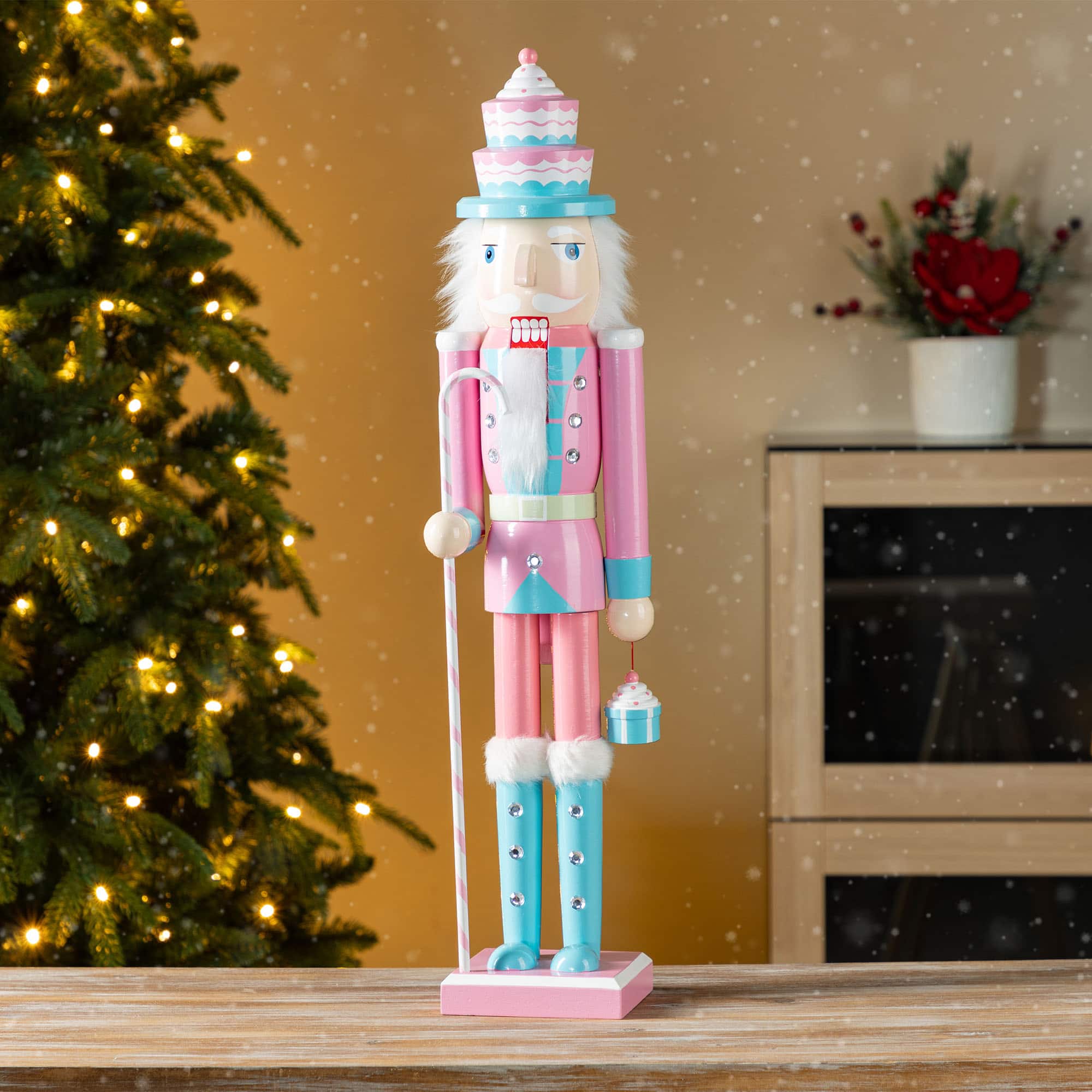 Glitzhome® 24"H Wooden Christmas Pink Cake Nutcracker