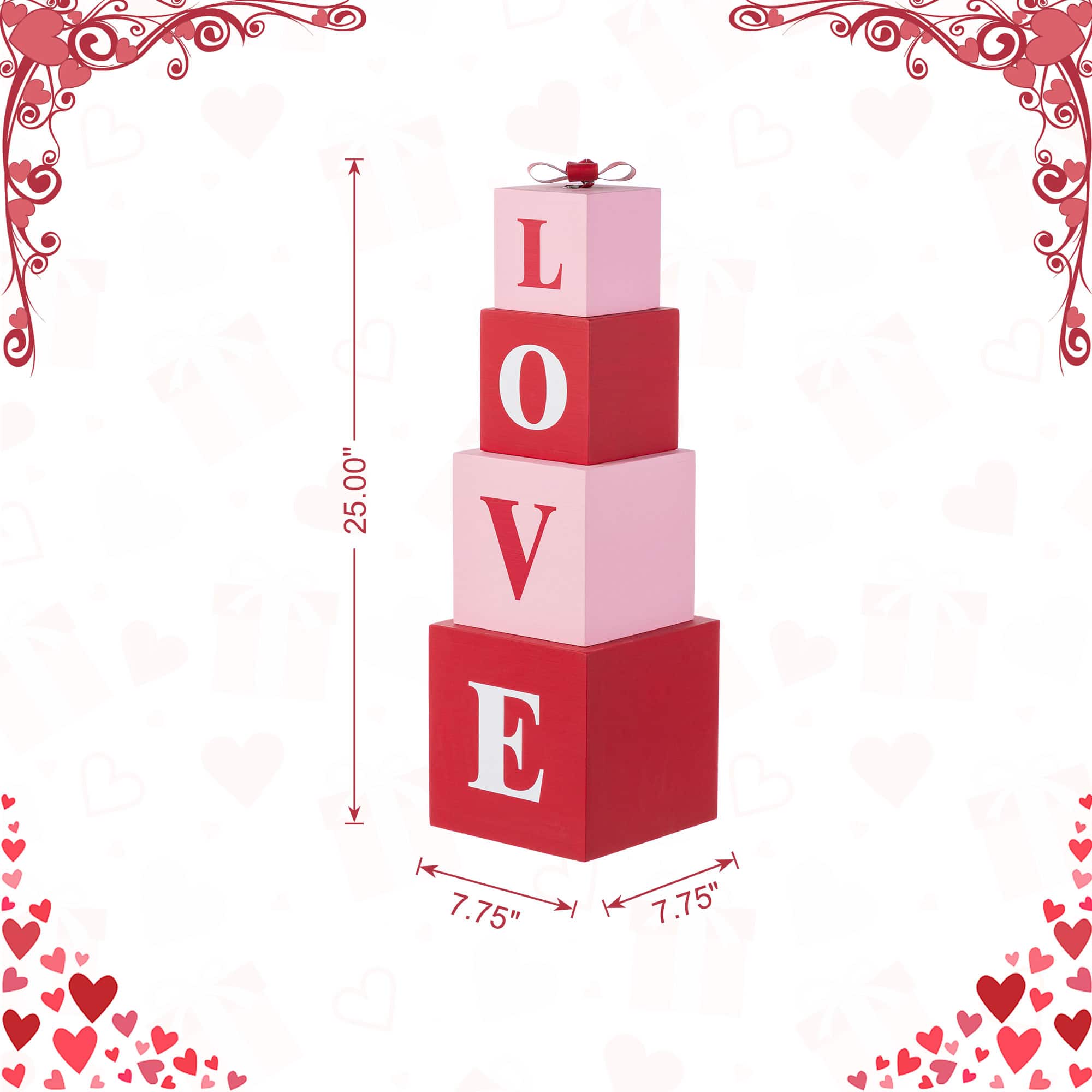 Glitzhome® 25" Valentine's Wooden Double-Sided XOXO & LOVE Boxed Porch Decor