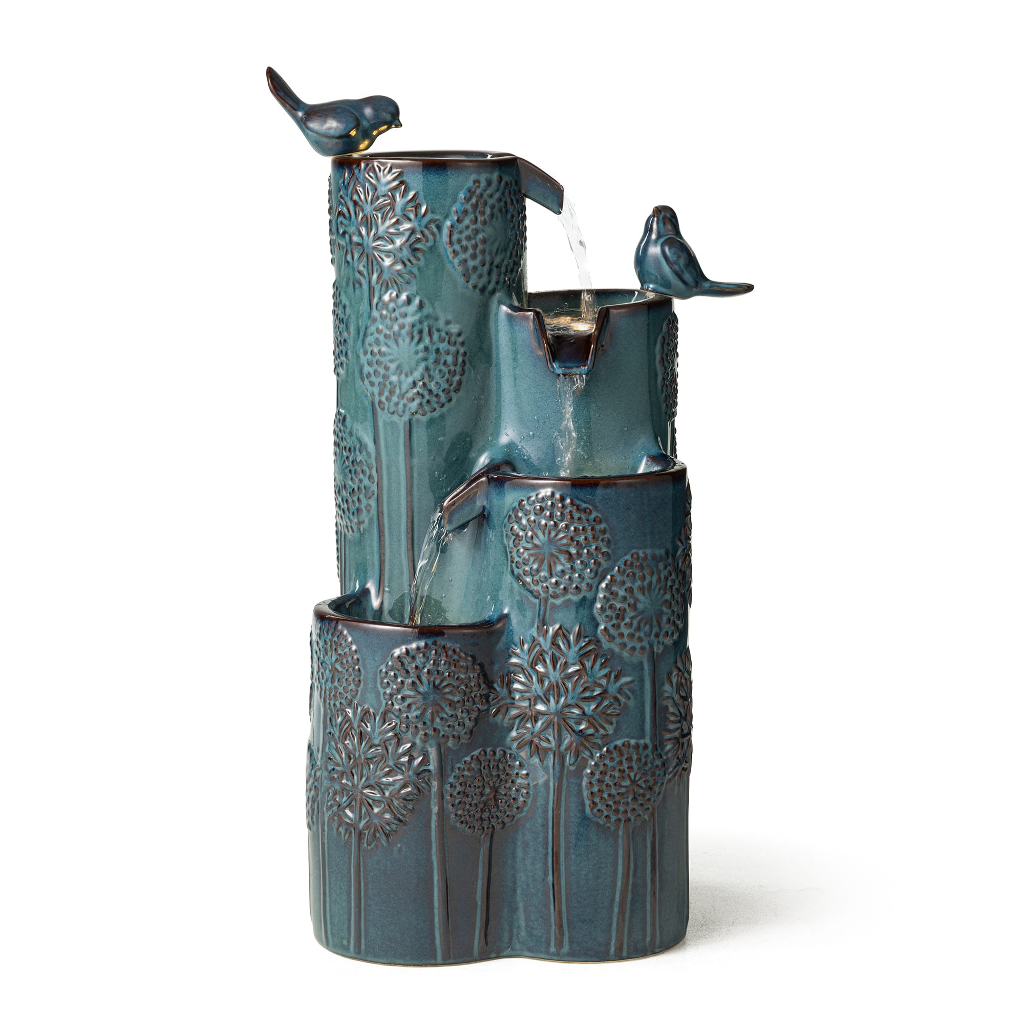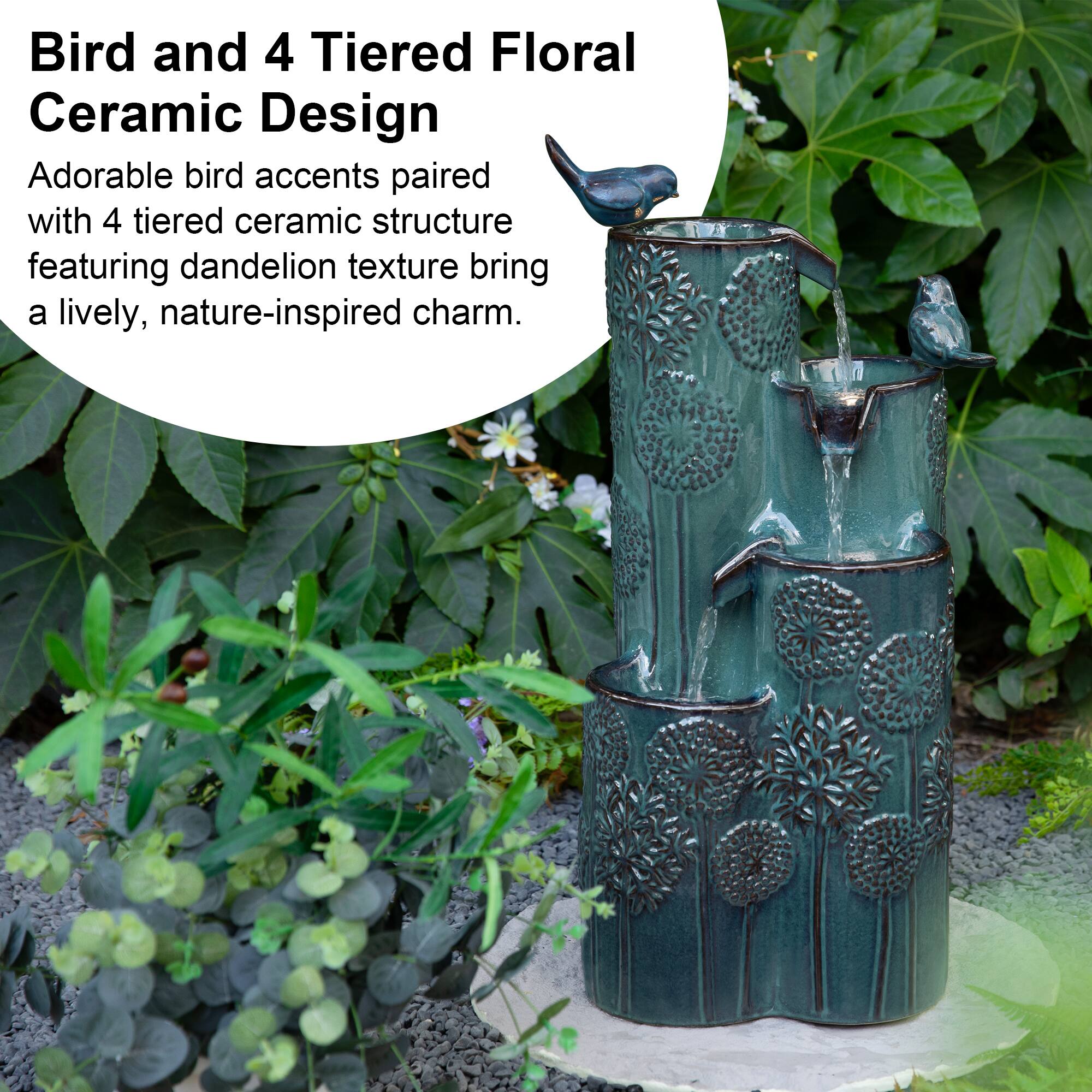 Glitzhome® 26.25" LED 4-Tier Dandelion Texture Vase-Shaped Outdoor Floor Fountain