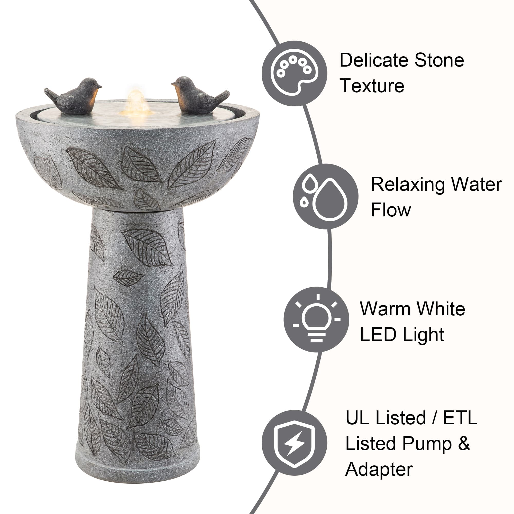 Glitzhome® 27.5" LED Birdbath Outdoor Fountain with Birds