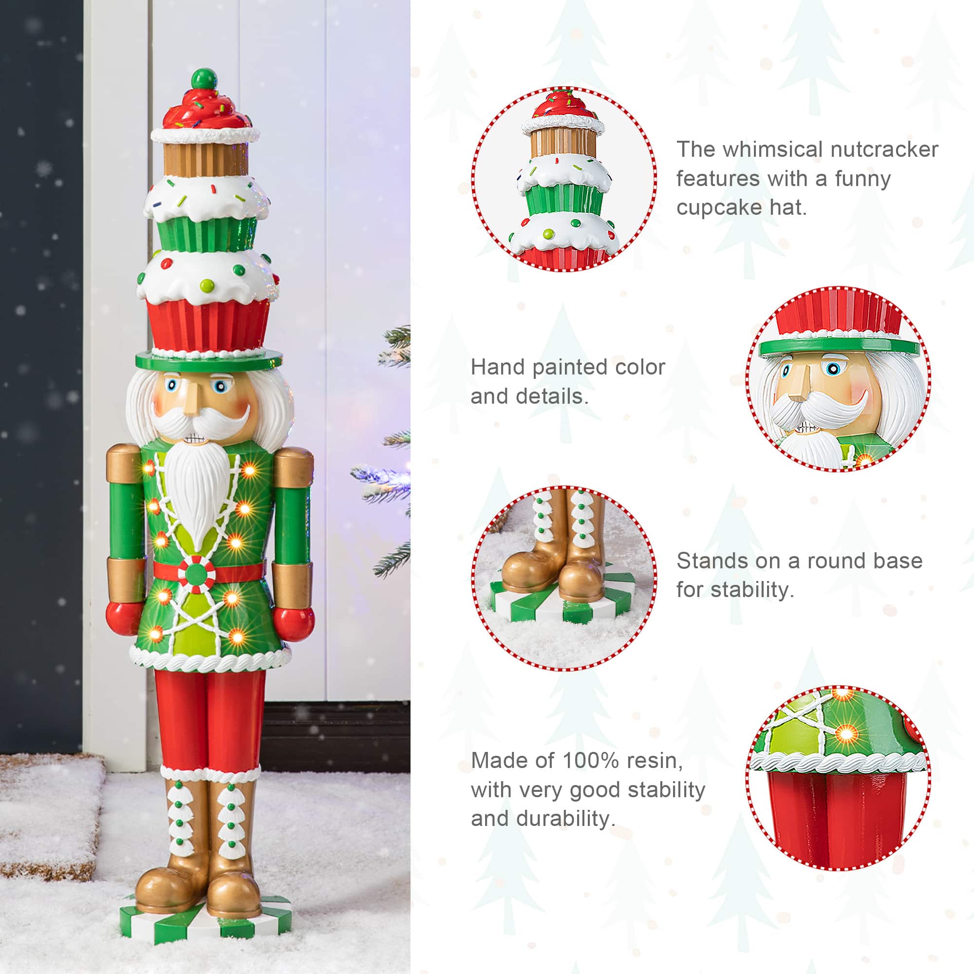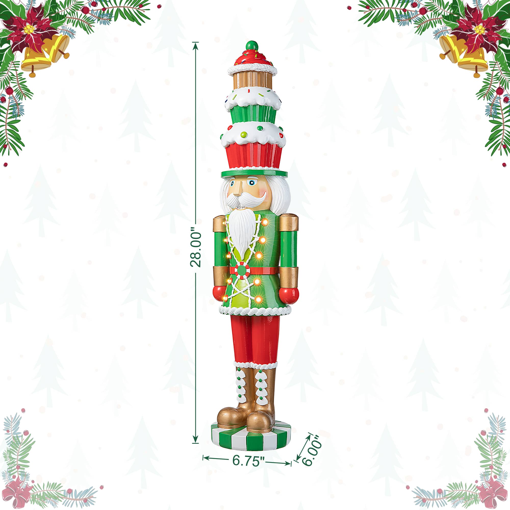 Glitzhome® 28" Pre-Lit Christmas Nutcracker Porch Décor with Timer