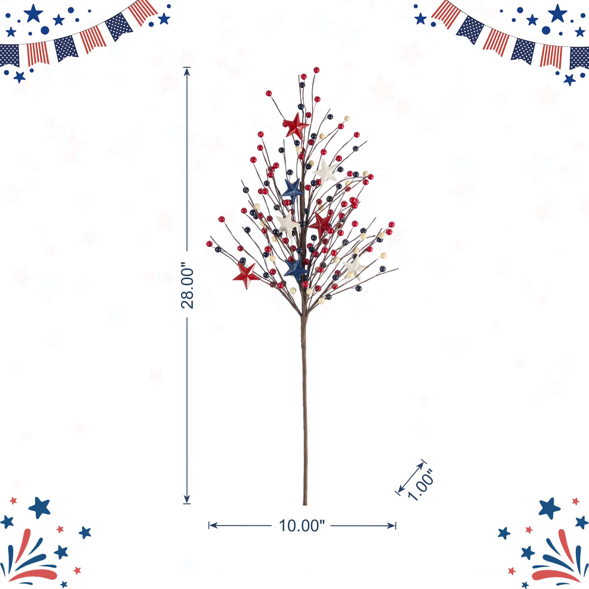 Glitzhome® 28" Set of 2 Patriotic Americana Stars and Berry Garden Picks