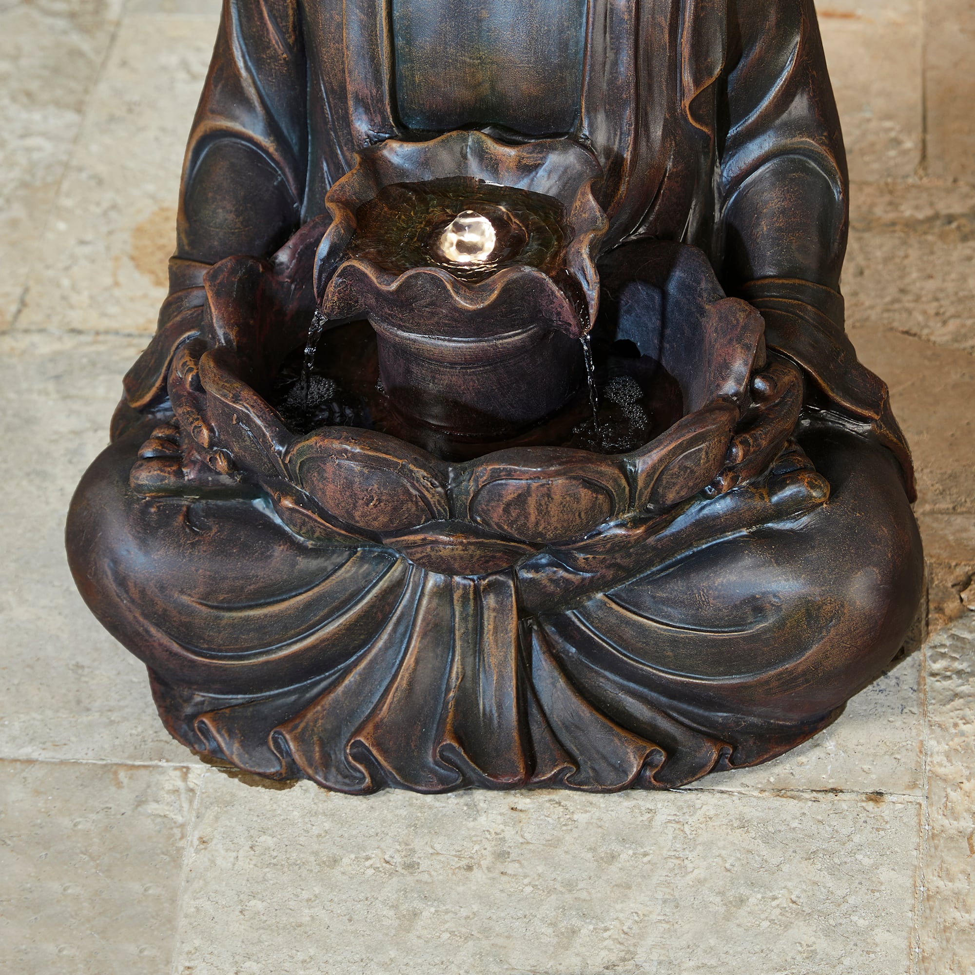 Glitzhome® 28.25" Zen-Style Meditating Buddha Statue Outdoor Fountain with LED Light