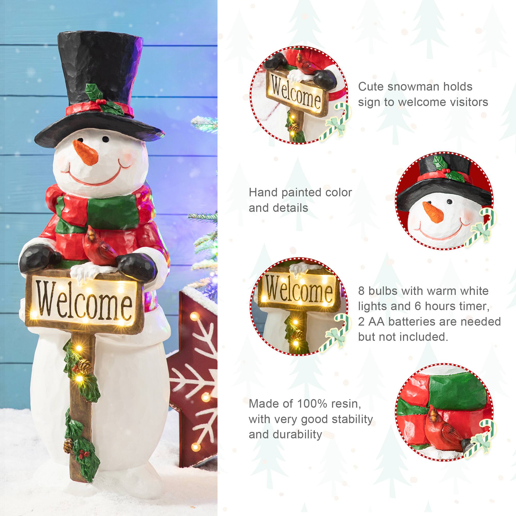 Glitzhome® 29.25" Pre-Lit Christmas Snowman Porch Décor