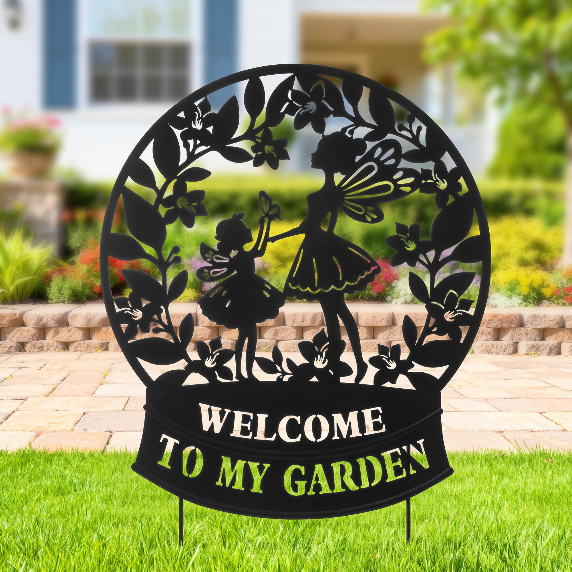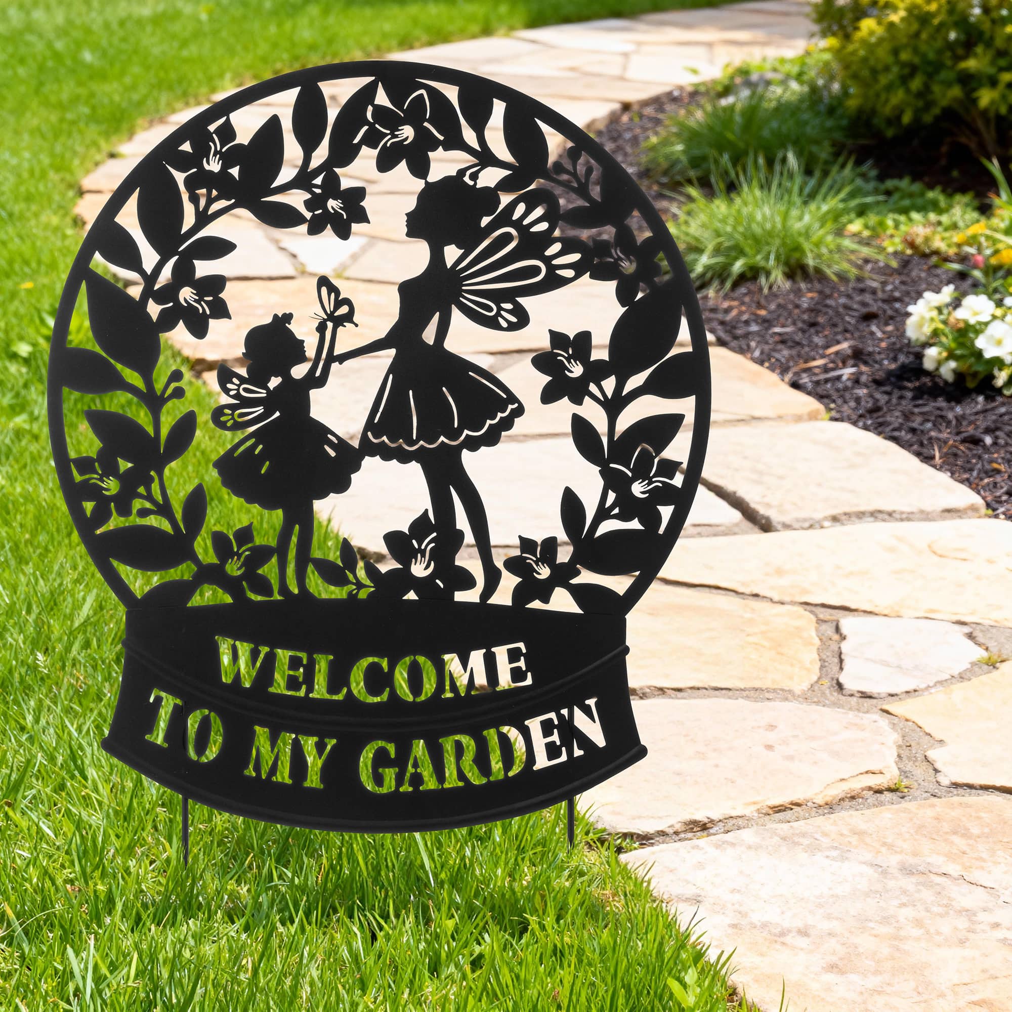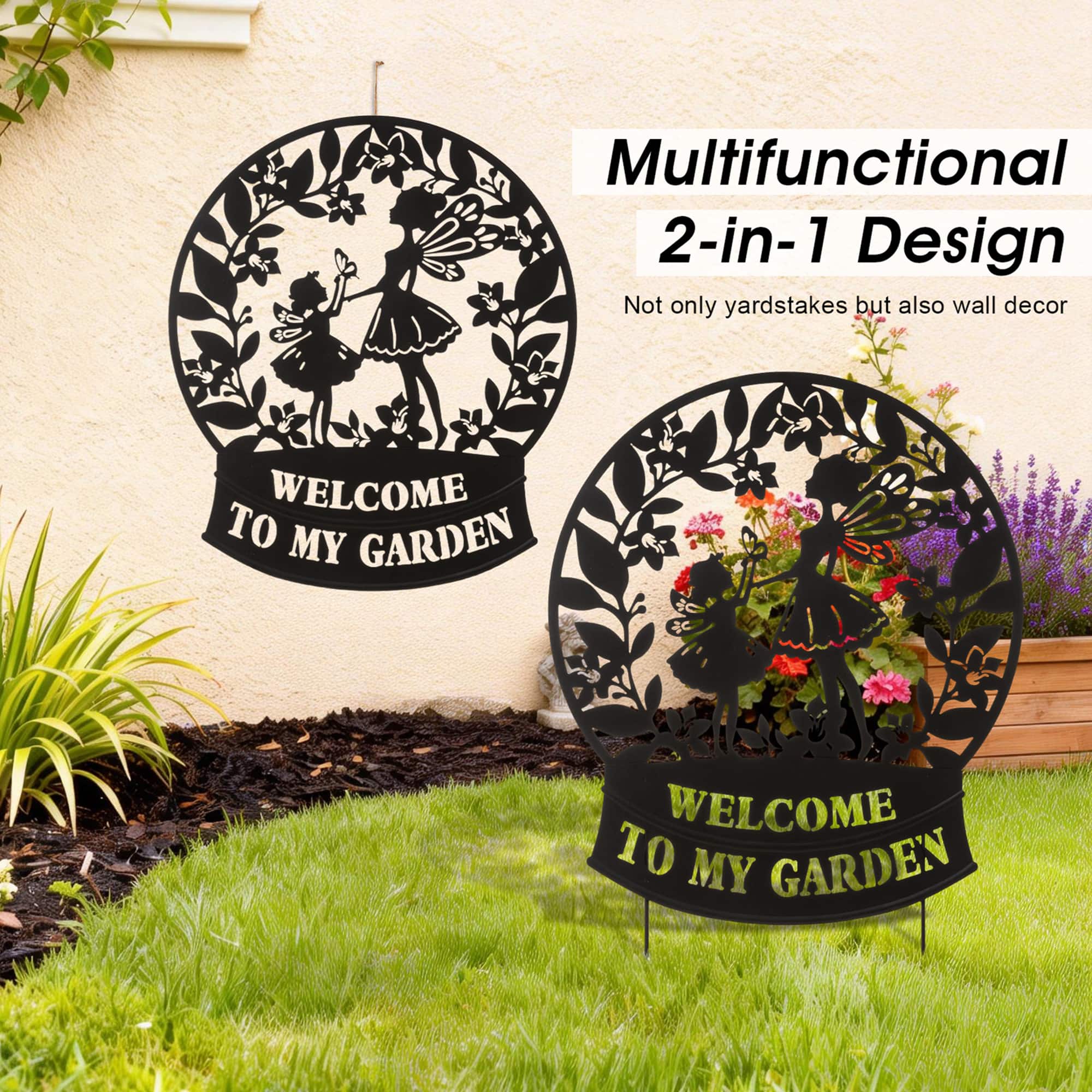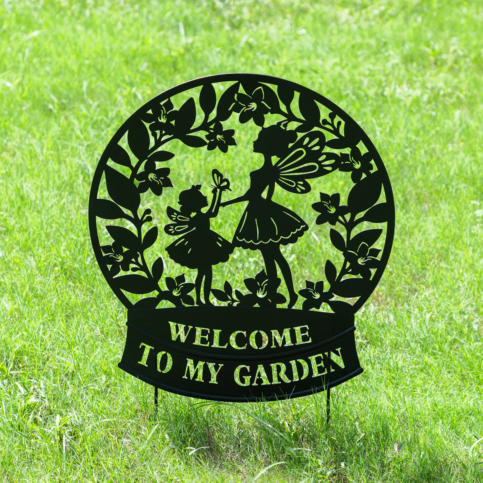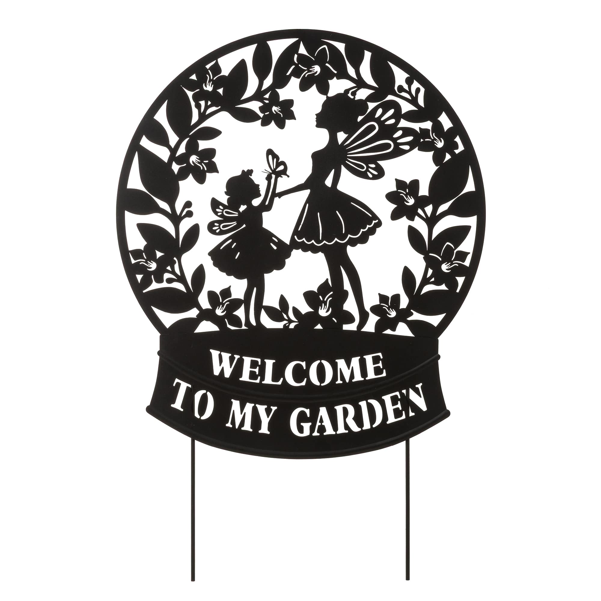 Glitzhome® 30" 2-in-1 Painted Metal Flower Fairy Silhouette Garden Yard Stake & Wall Decor