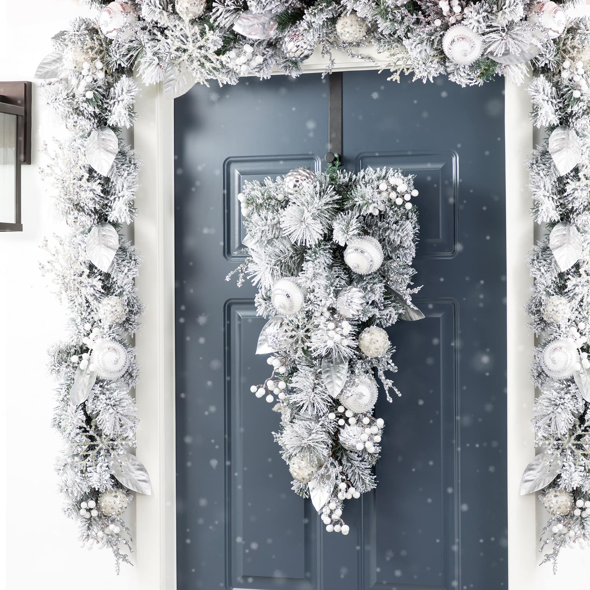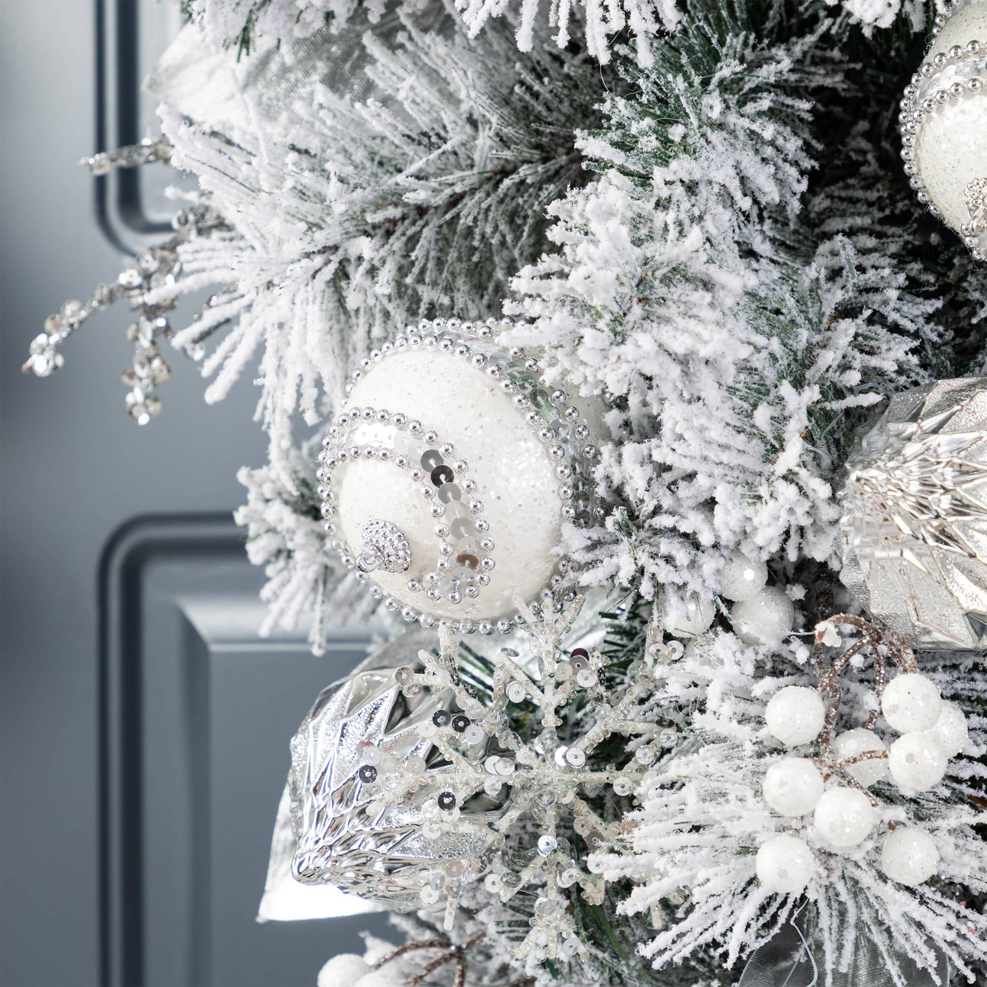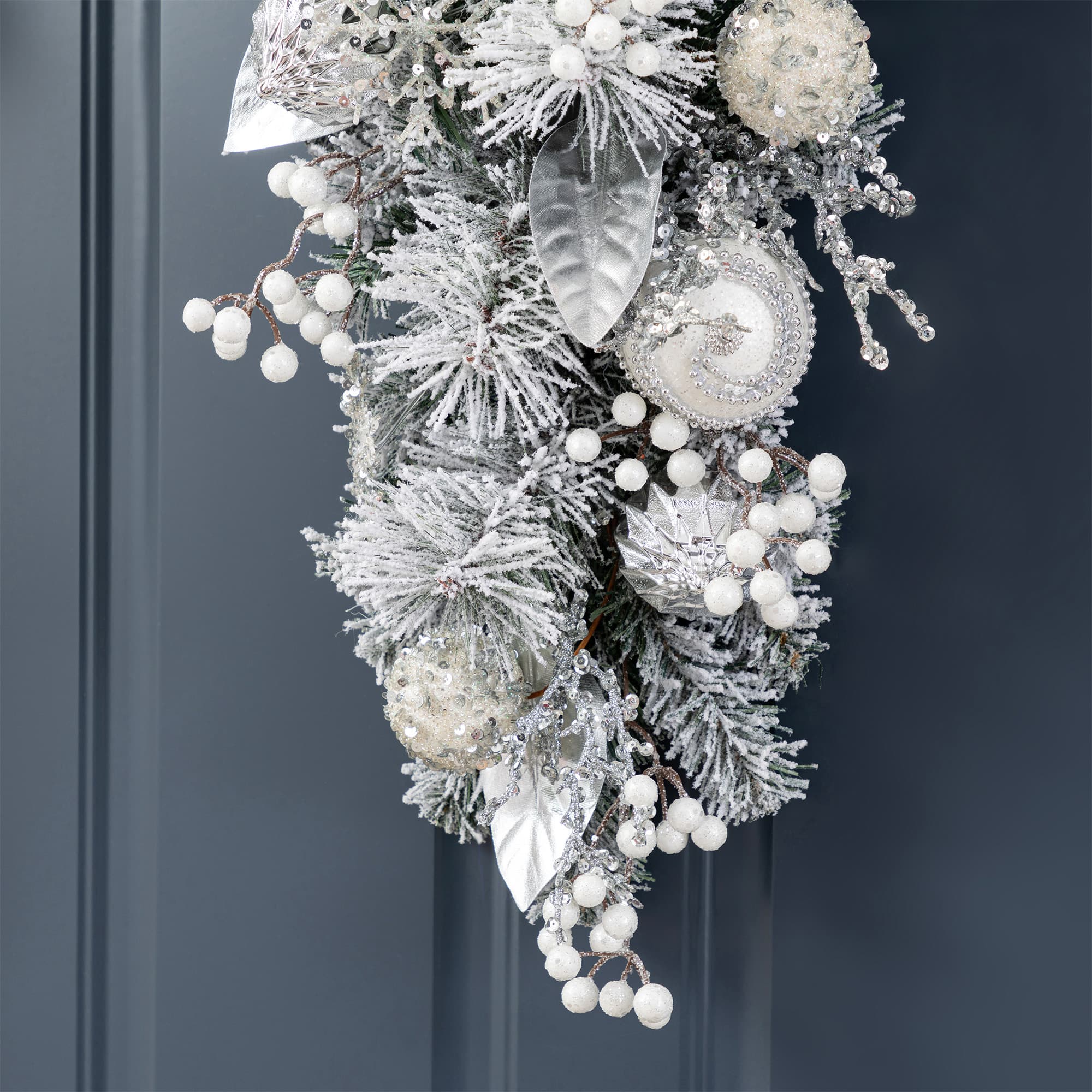 Glitzhome® 30"H Christmas Silver & White Ornament and Berry Teardrop