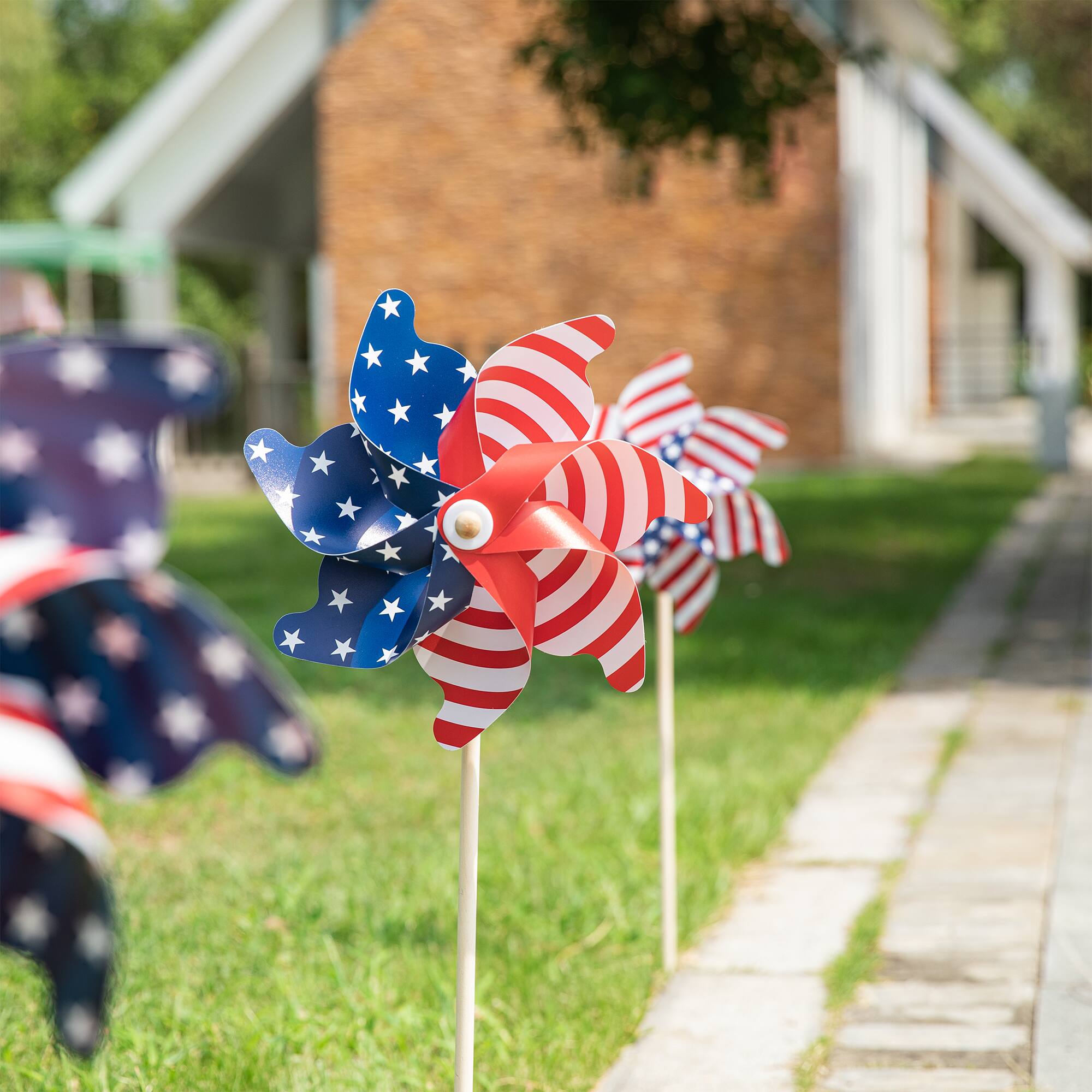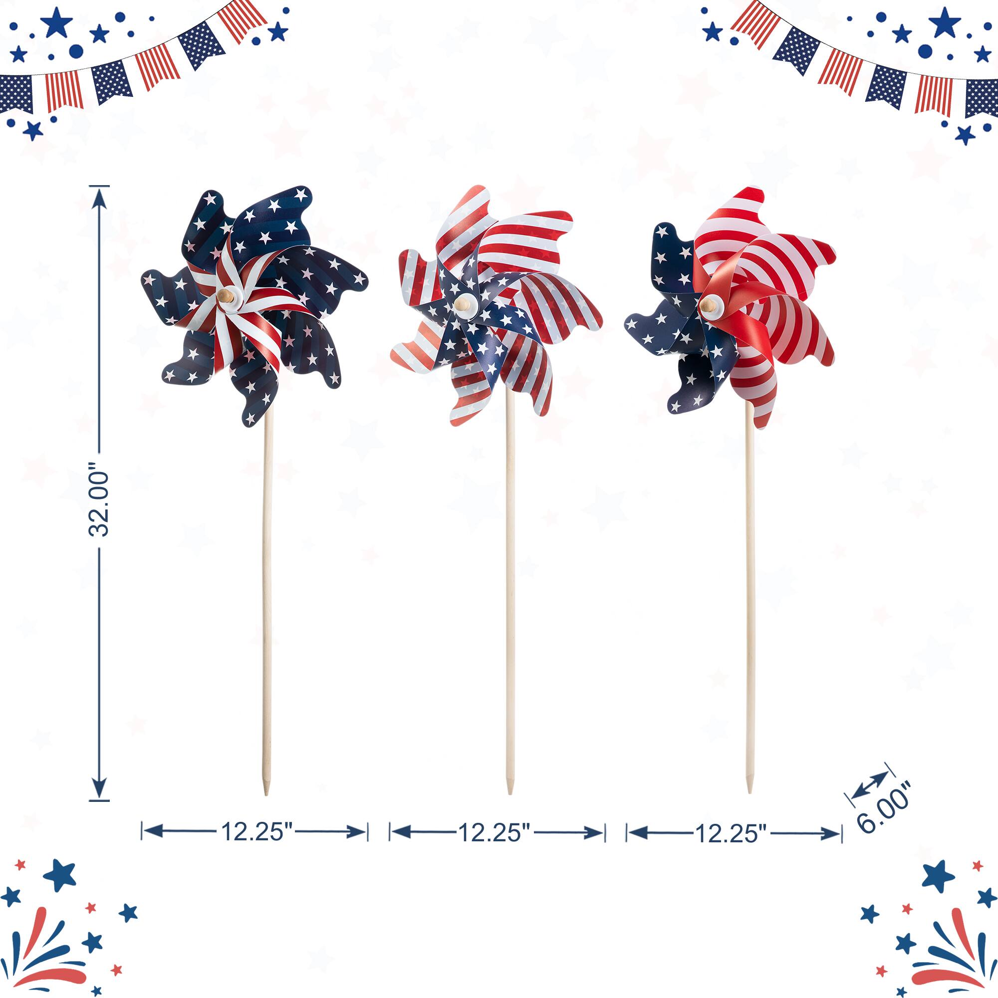Glitzhome® 32" Plastic Stars & Stripes Patriotic Windmill Set