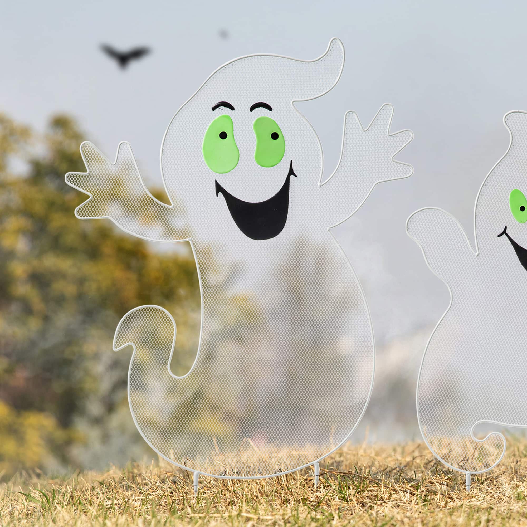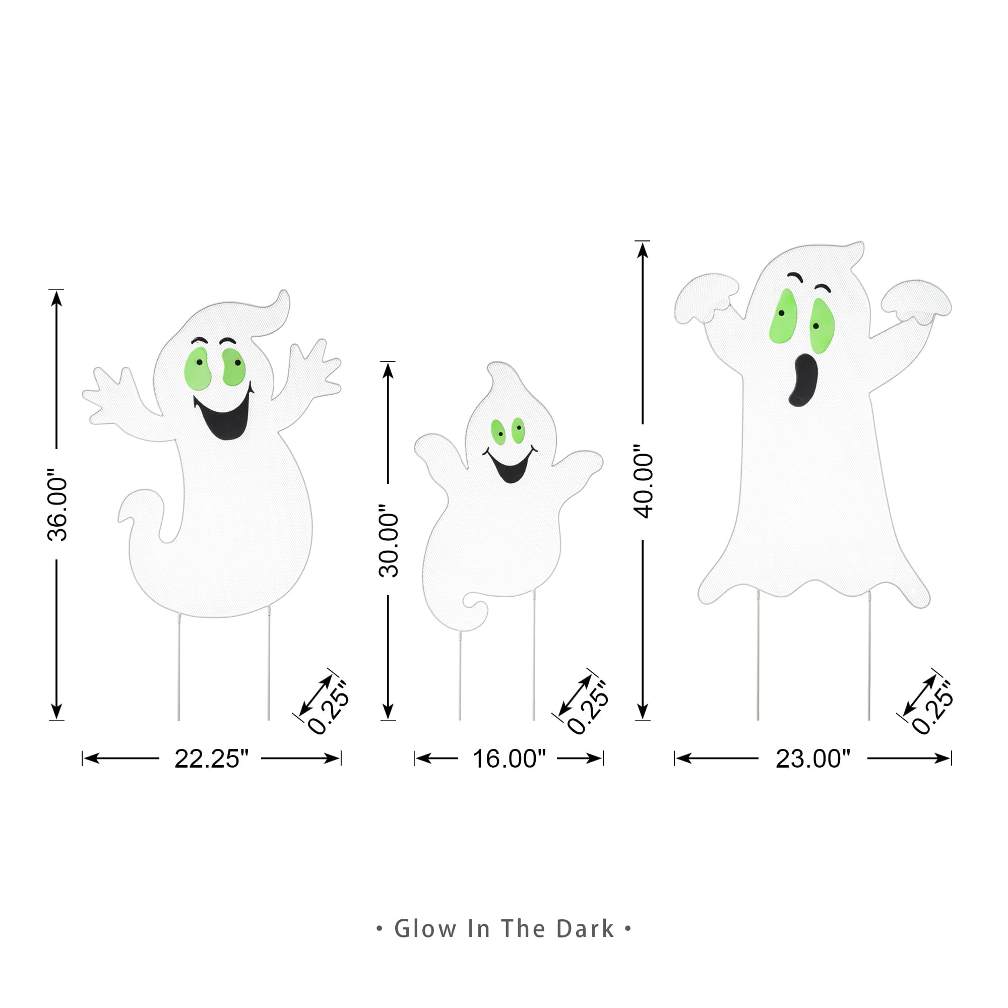 Glitzhome® 3.3ft. Halloween Metal Mesh Glow in Dark Ghost Family Yard Stake Set