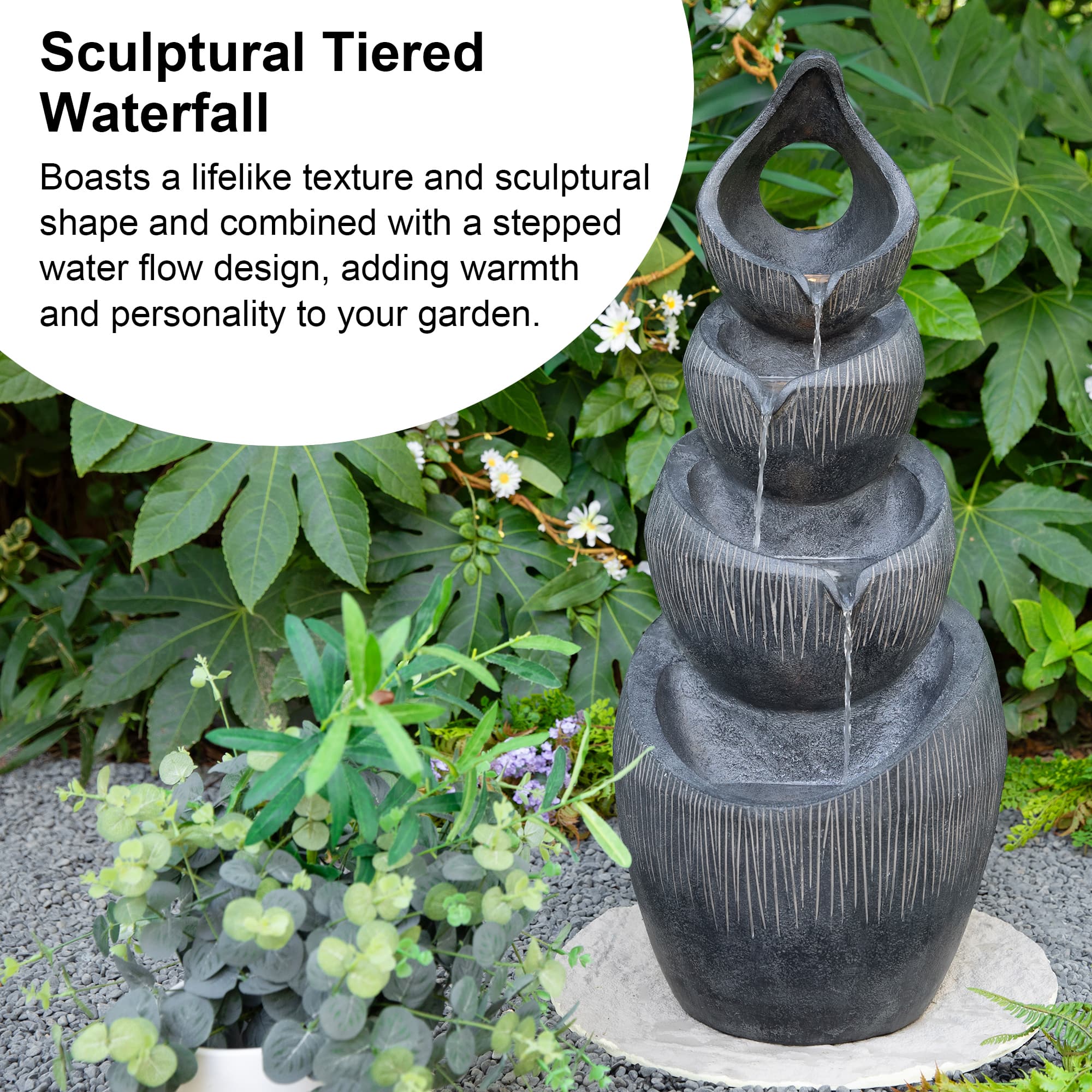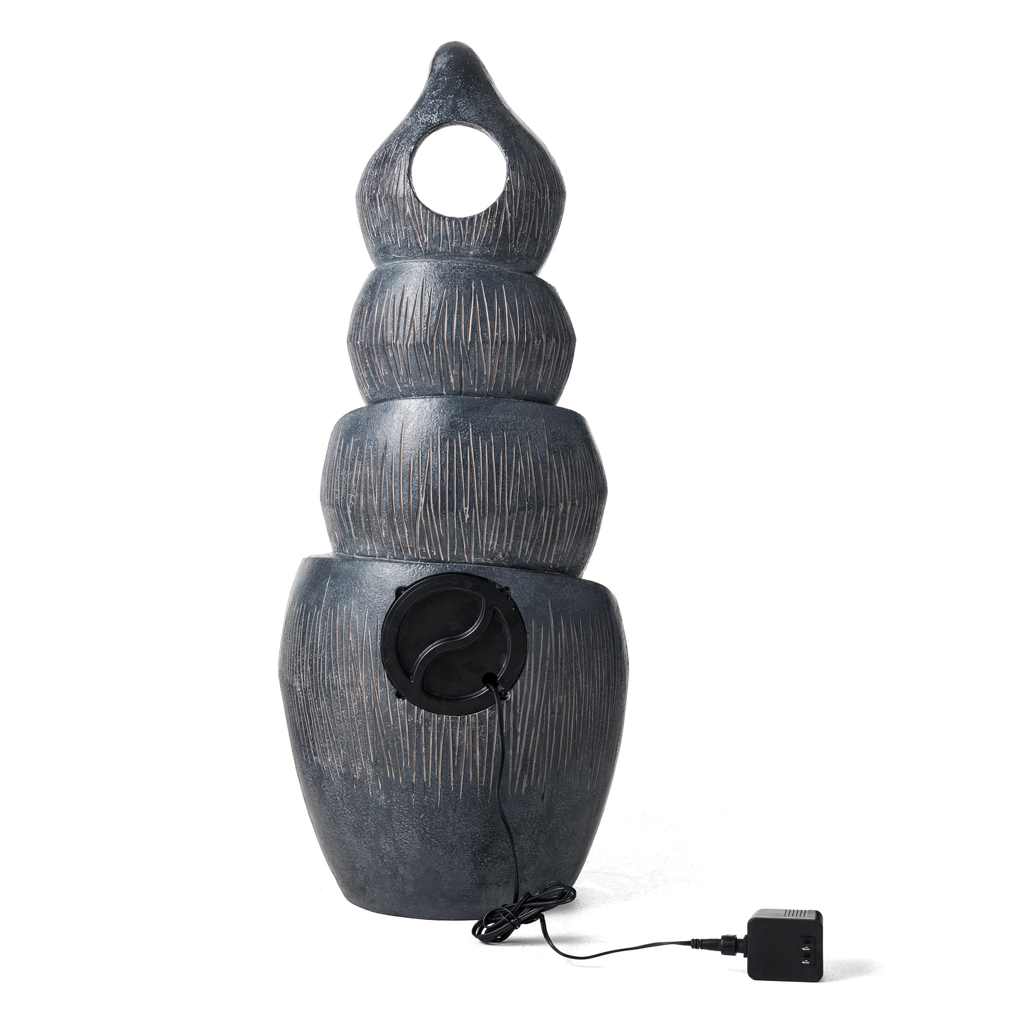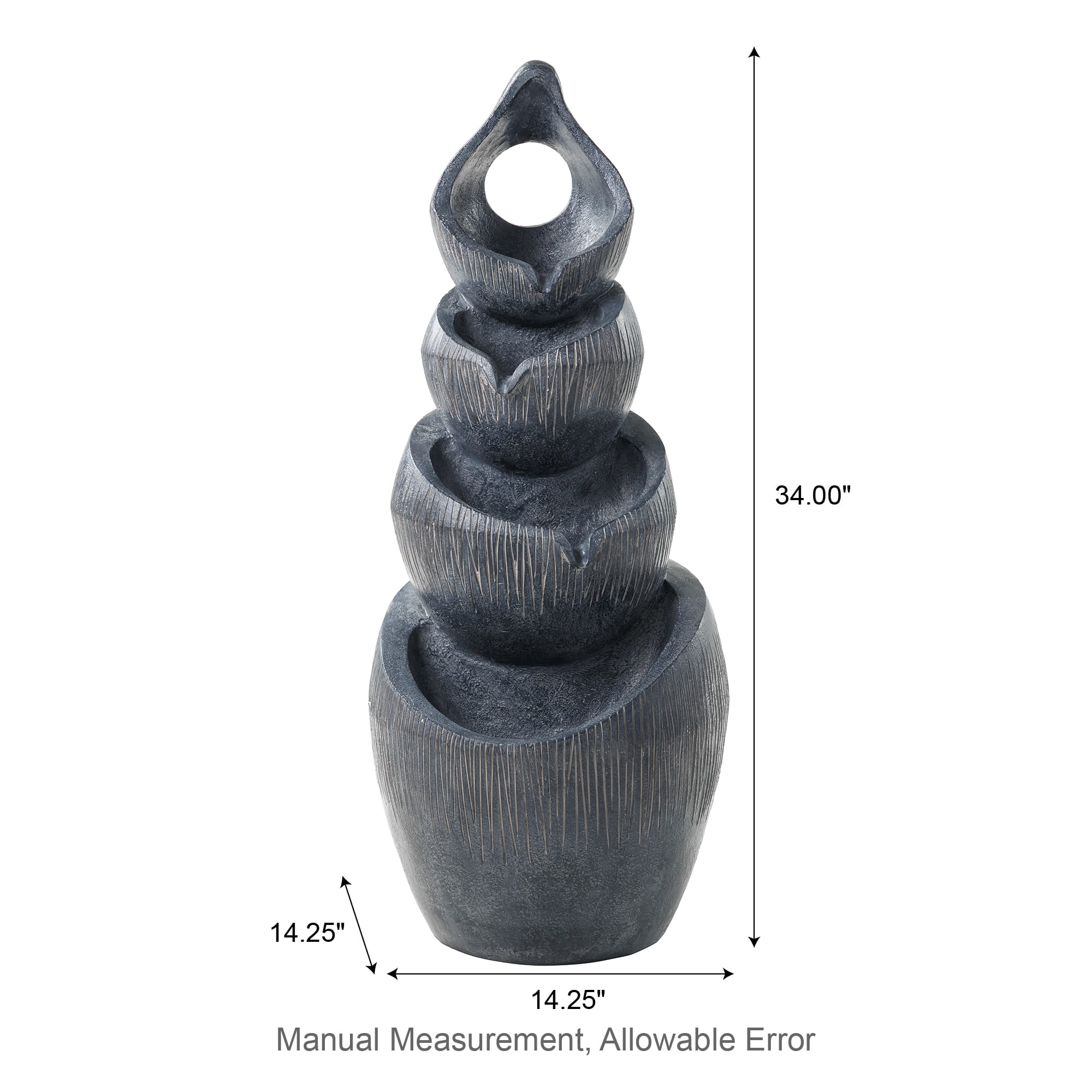 Glitzhome® 34" Zen-Style LED 4-Tier Alms Bowl Outdoor Fountain