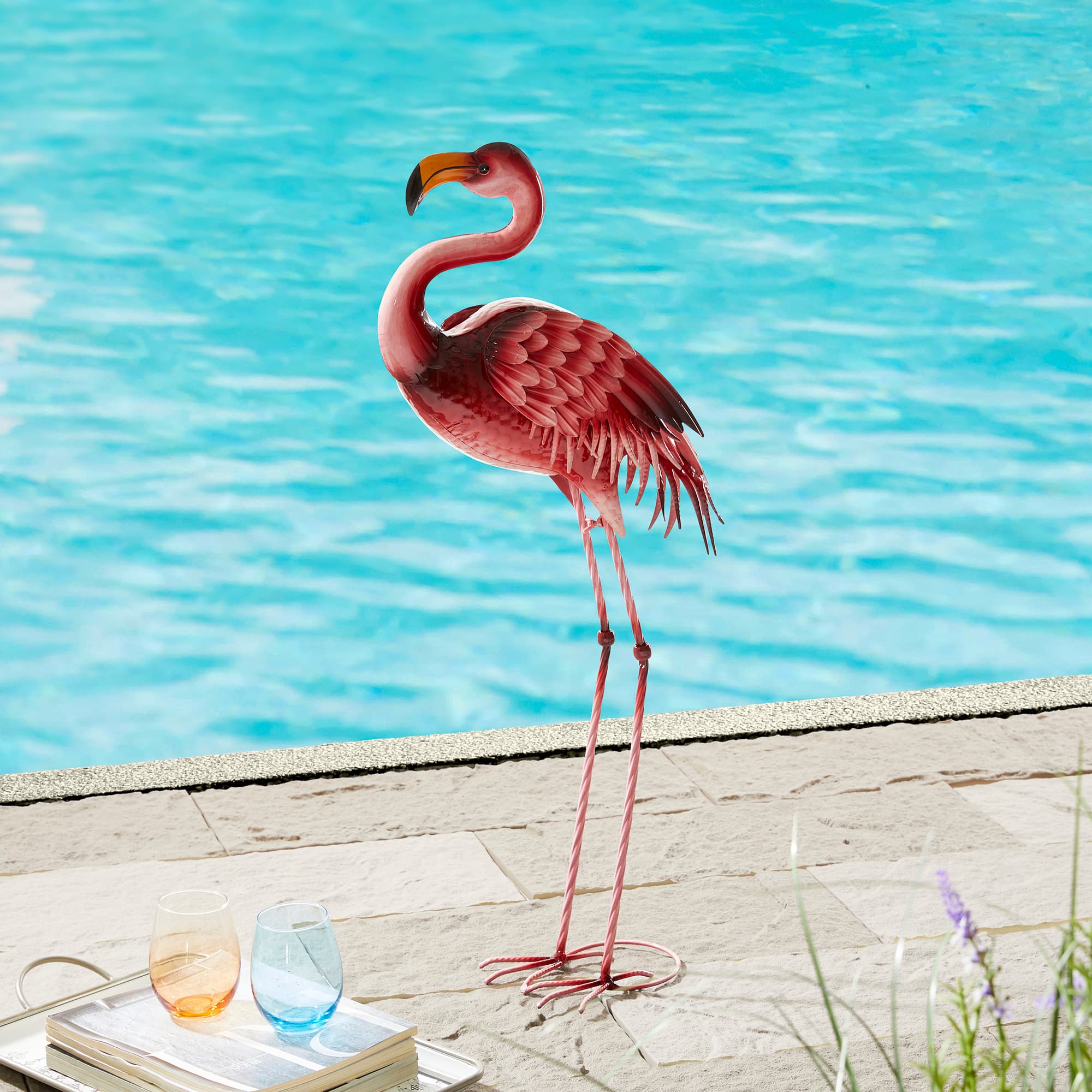 Glitzhome® 35.25" Metal Standing Flamingo Garden Statue with Stakes