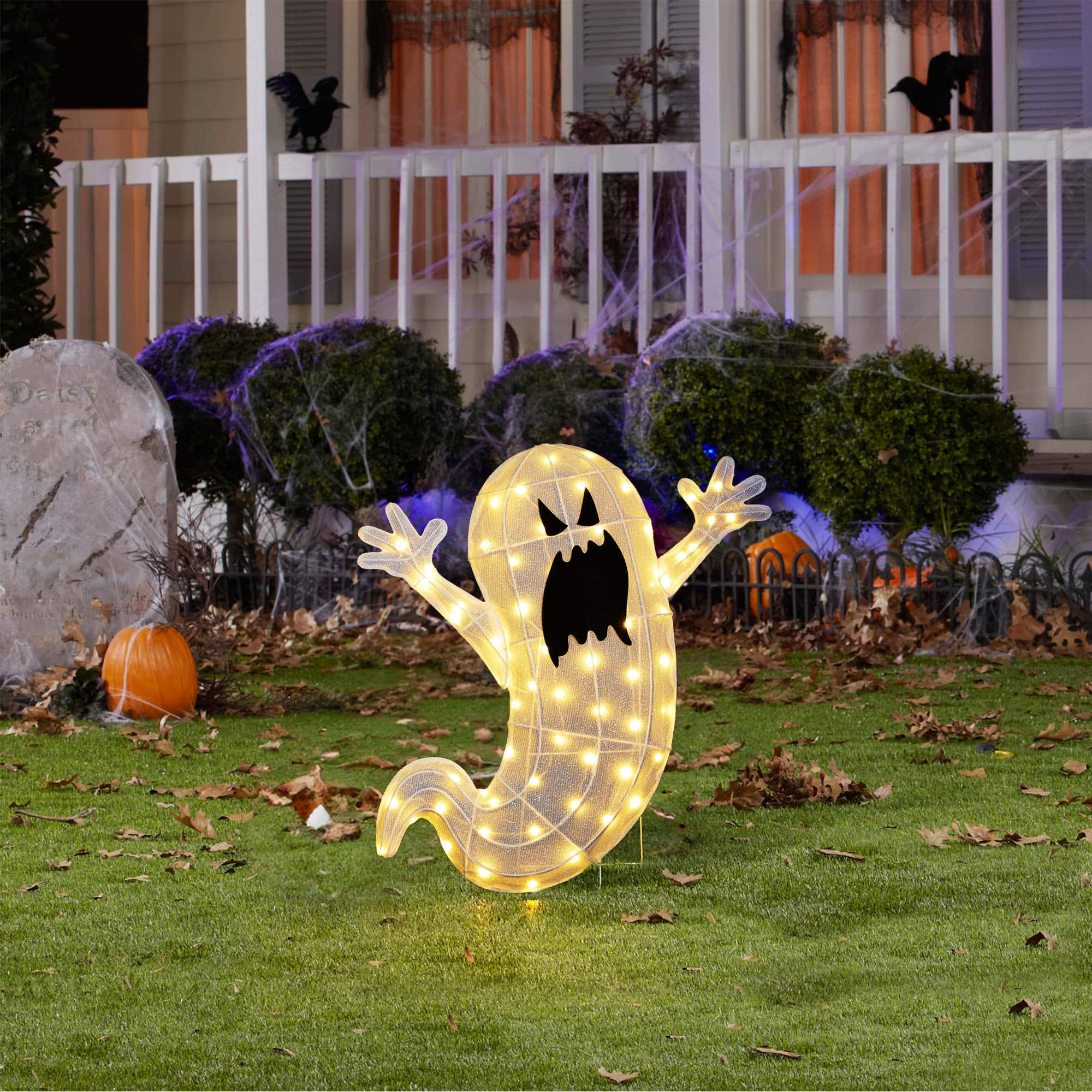 Glitzhome® 35.5"H Lighted Halloween 2.5D Ghosts Outdoor Decor
