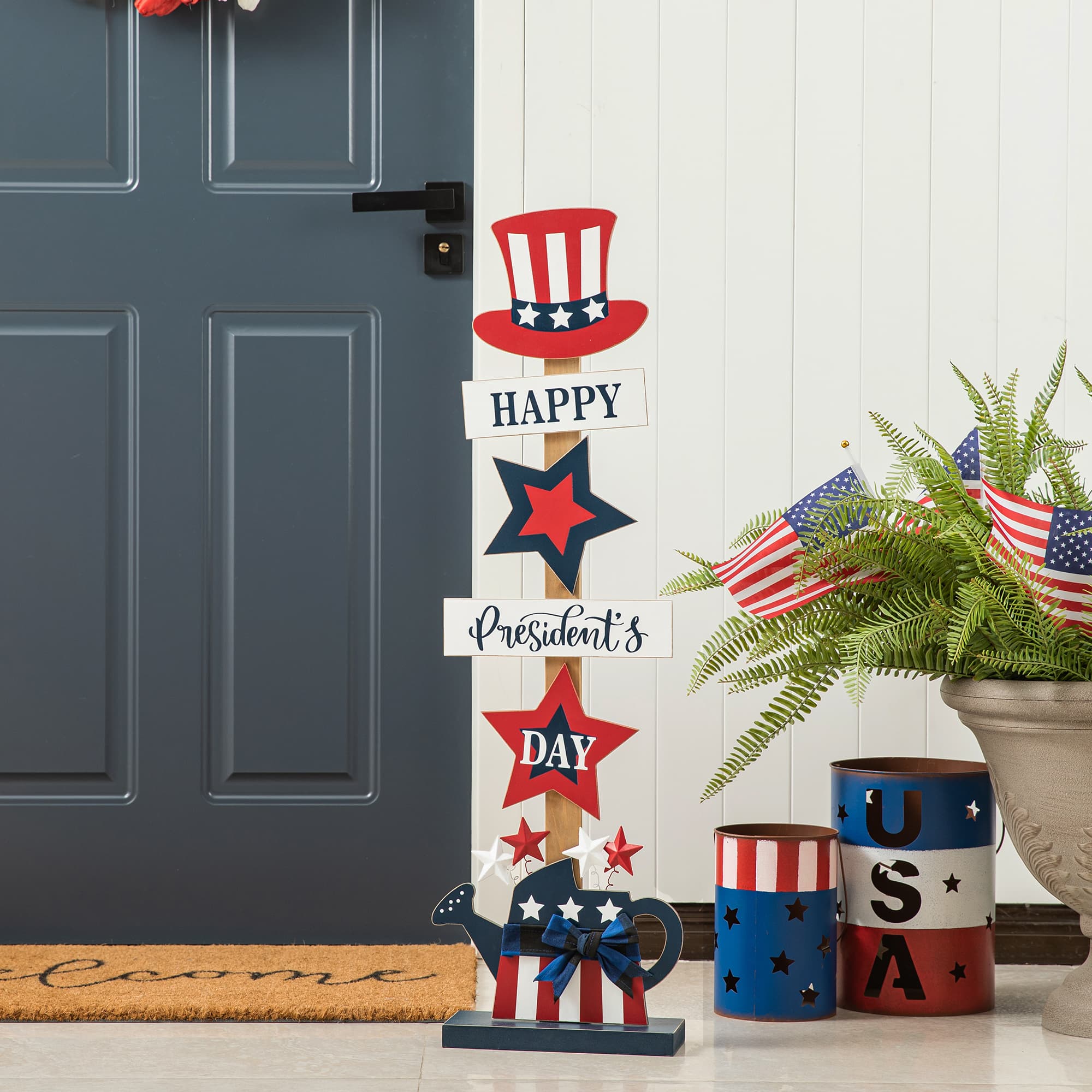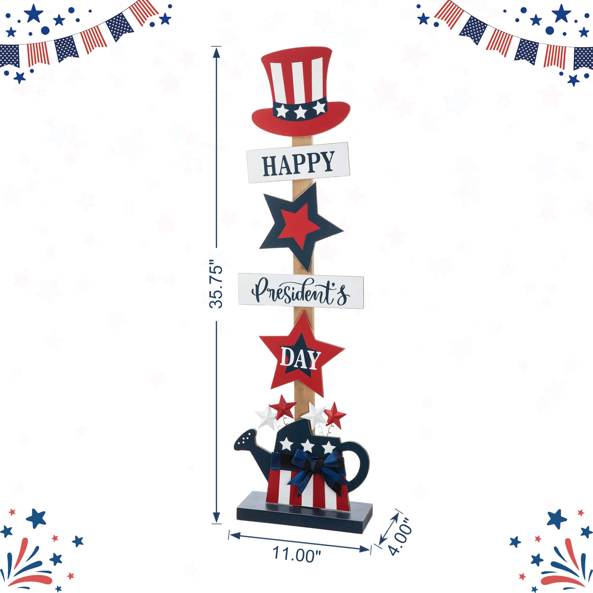 Glitzhome® 35.7" Patriotic Americana Wooden Top Hat Porch Sign