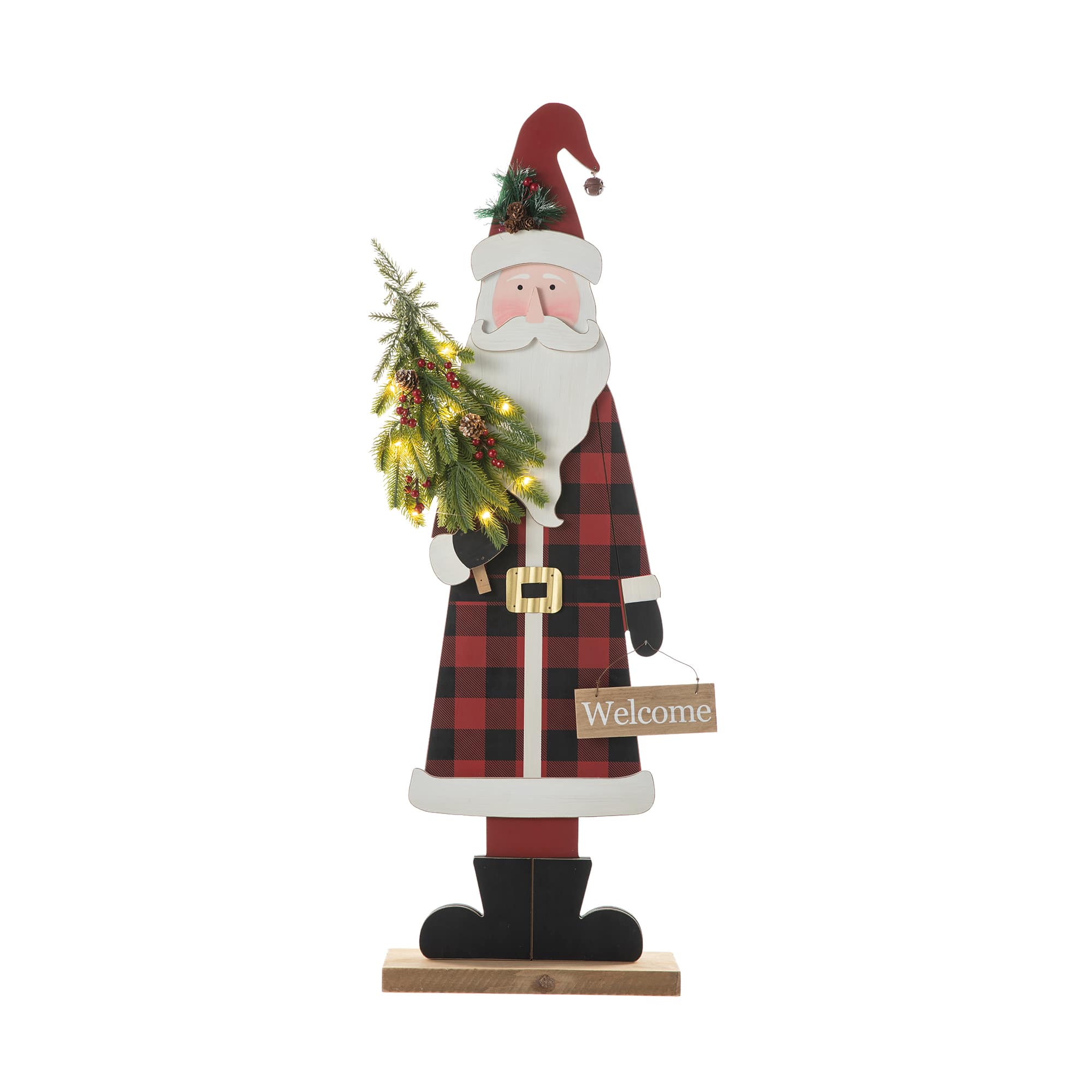 Glitzhome® 36'' Lighted Wooden Santa Porch Décor