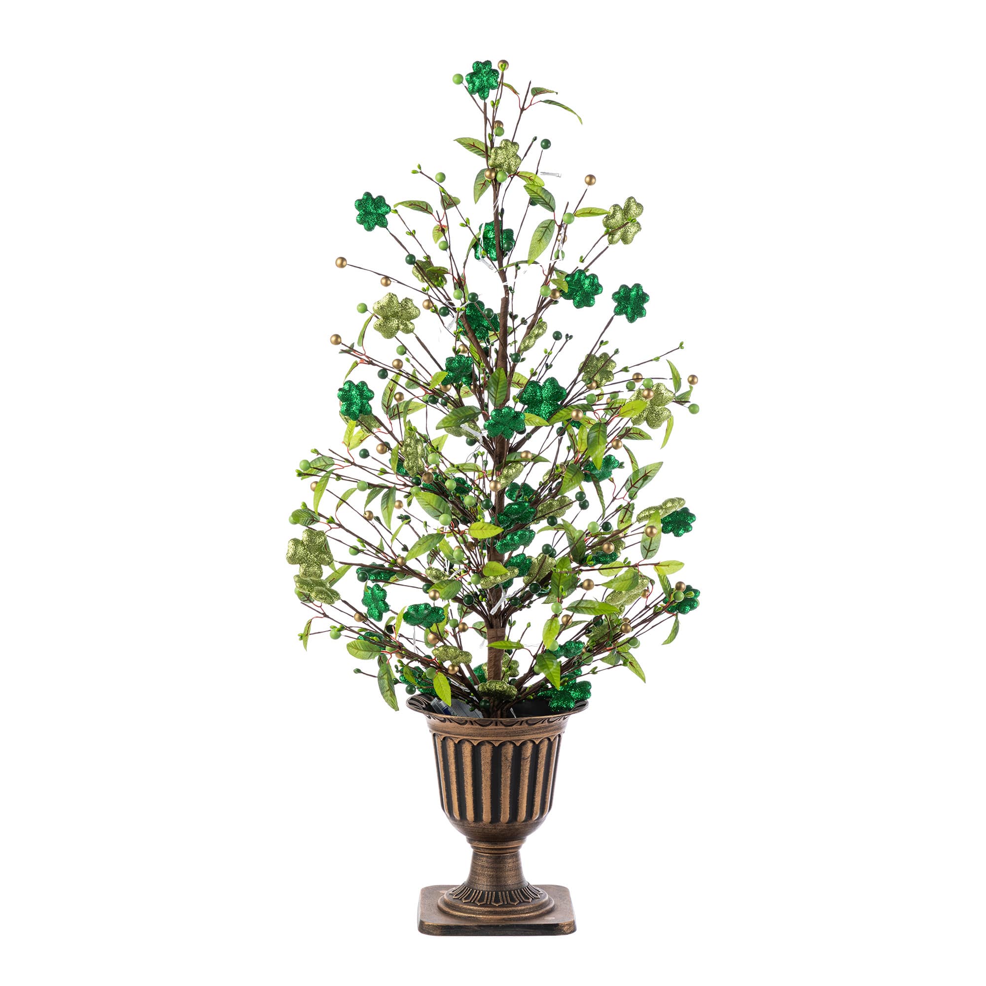 Glitzhome® 36" Lighted St. Patrick's Shamrock Urn Porch Tree with Timer