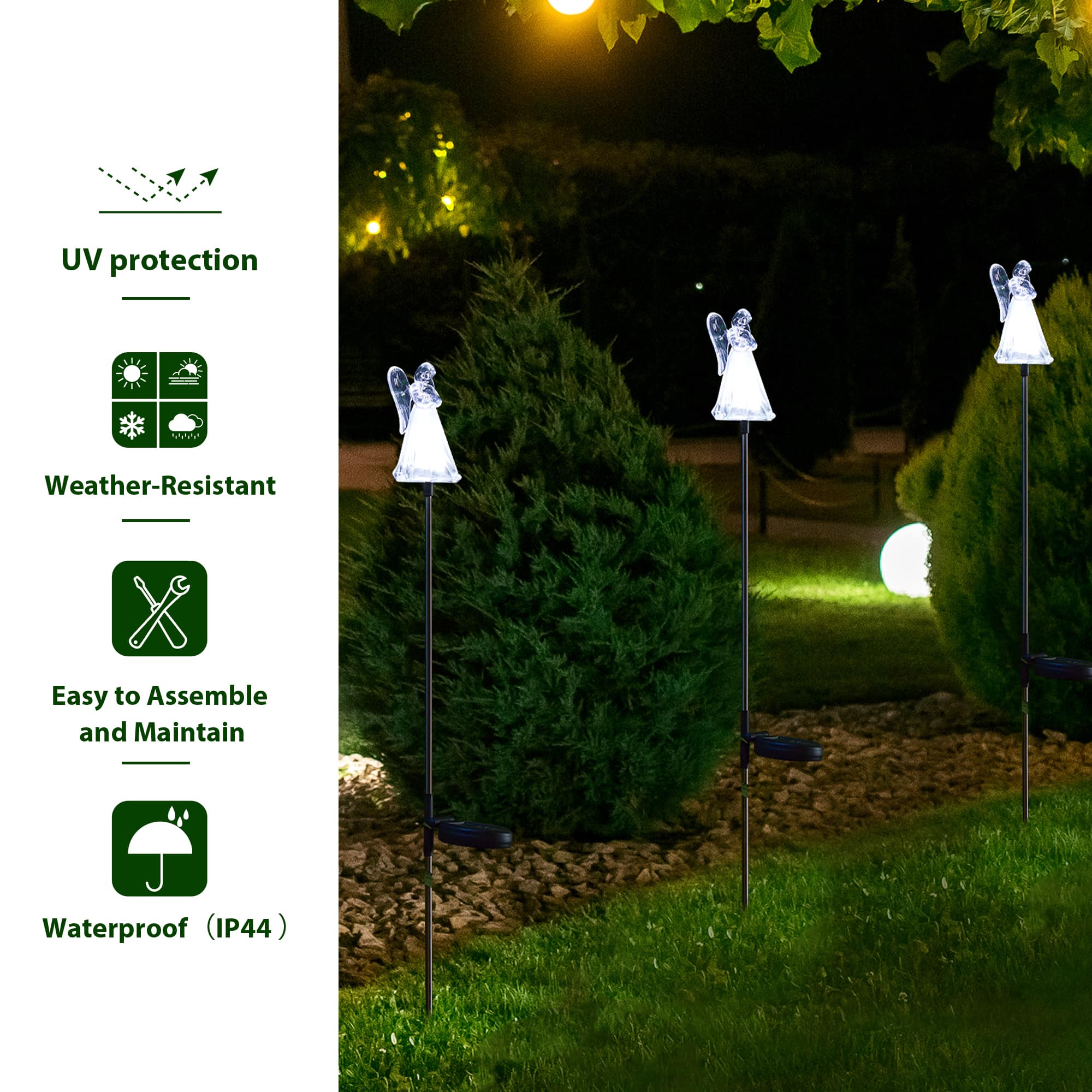 Glitzhome® 36" Solar Powered Angel Stake Light with Stainless Steel Poles, 3ct.