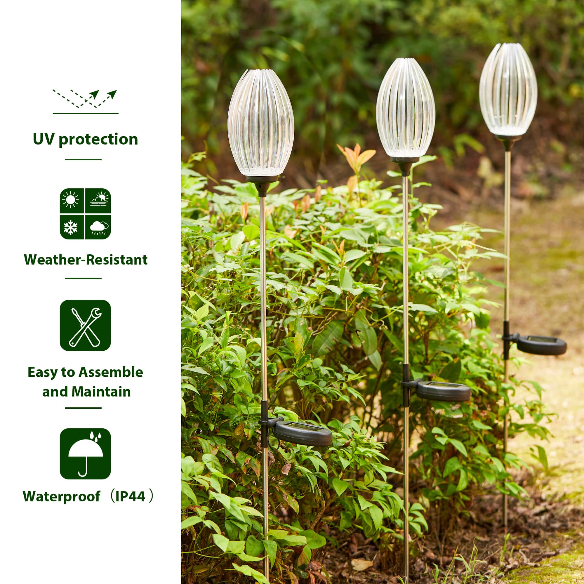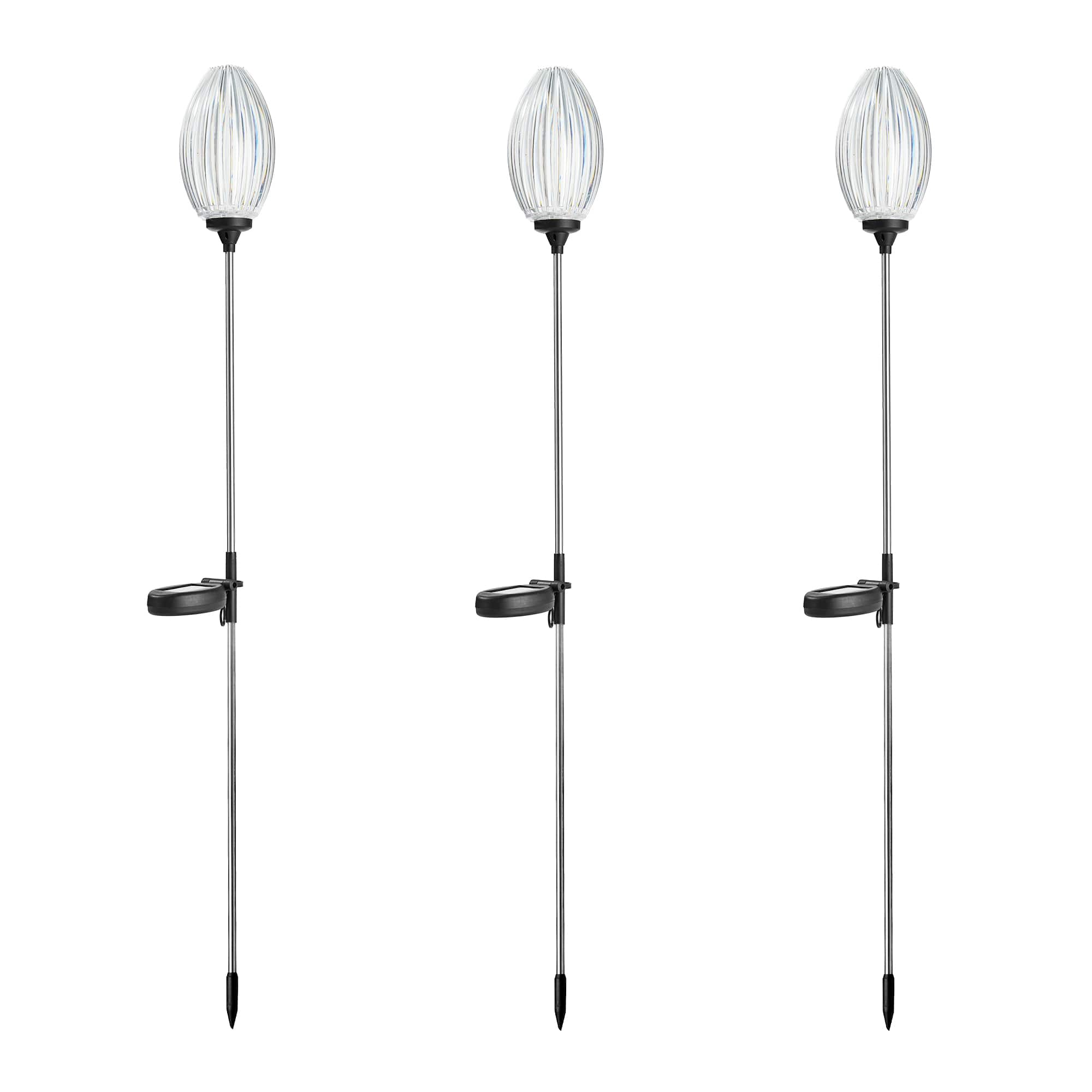 Glitzhome® 36" Solar Powered Oval Flower Stake Light with Stainless Steel Poles, 3ct.