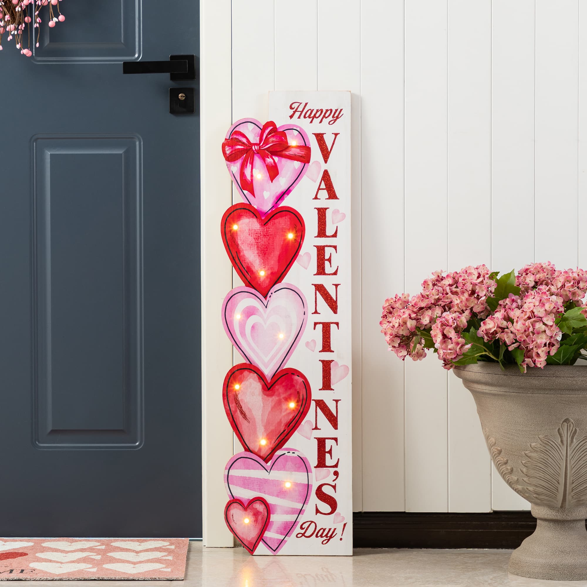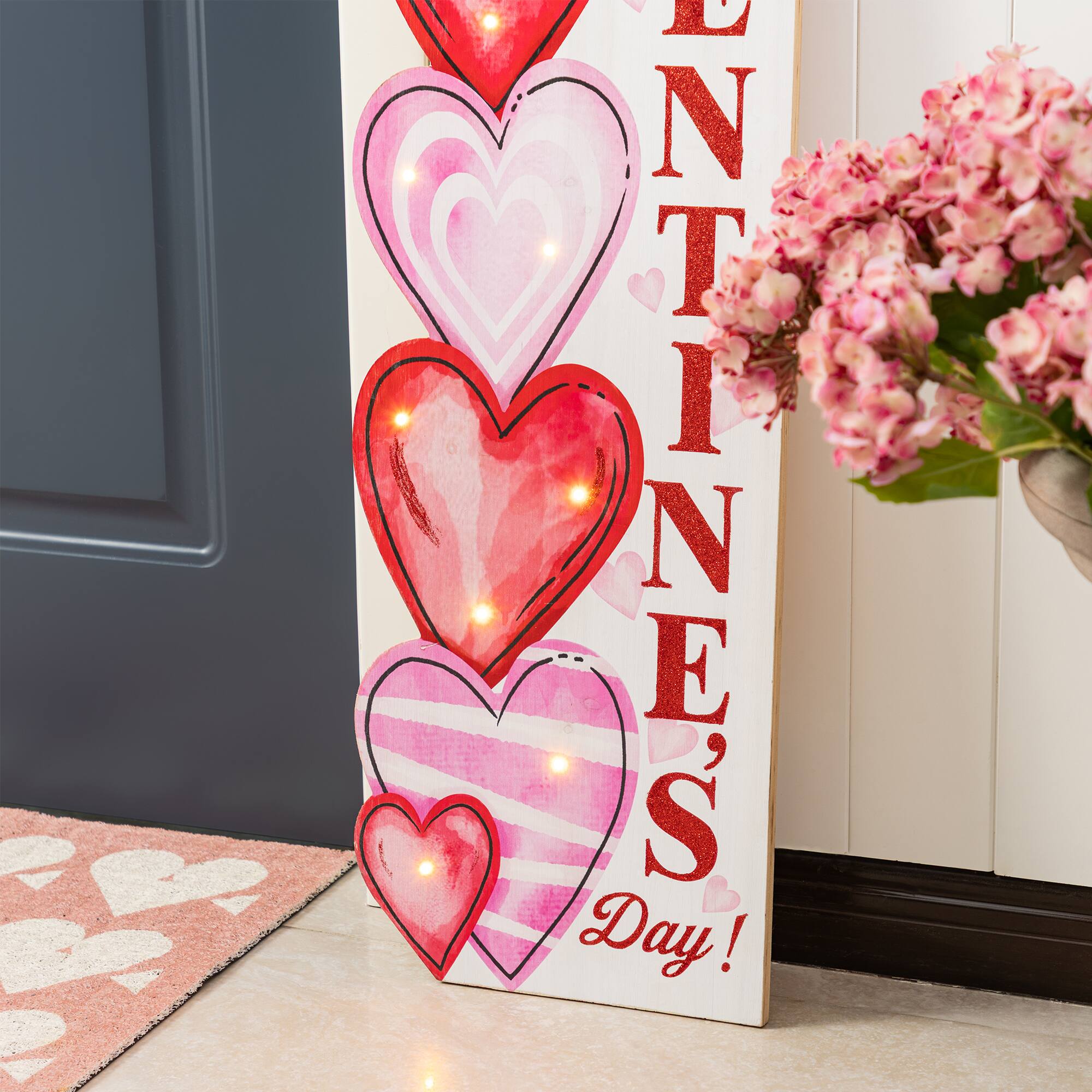 Glitzhome® 36" Valentine's Lighted Wooden Stacked Heart Porch Decor with Timer