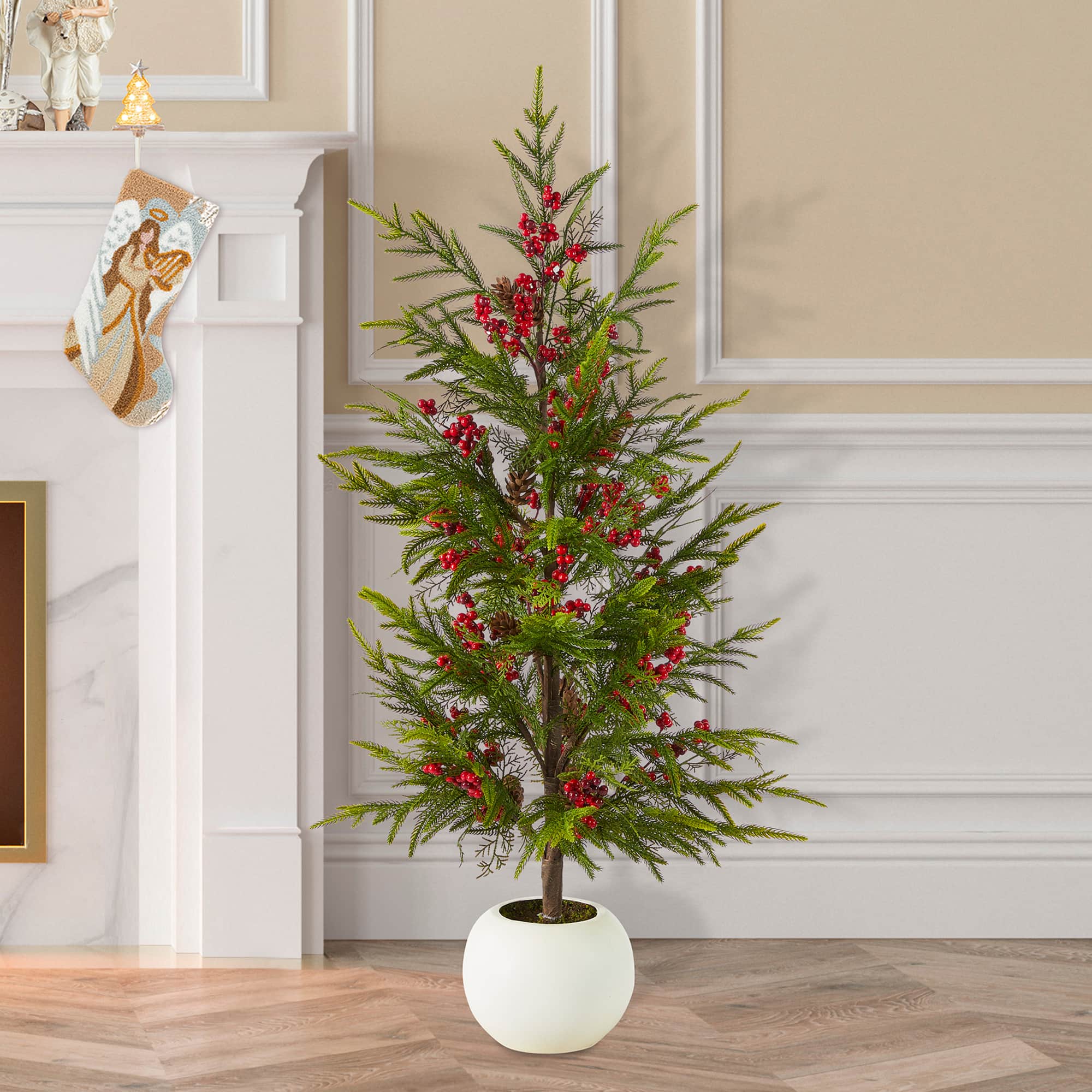 Glitzhome® 37.5"H Chirstmas Greenery Pine Porch Tree with Berries