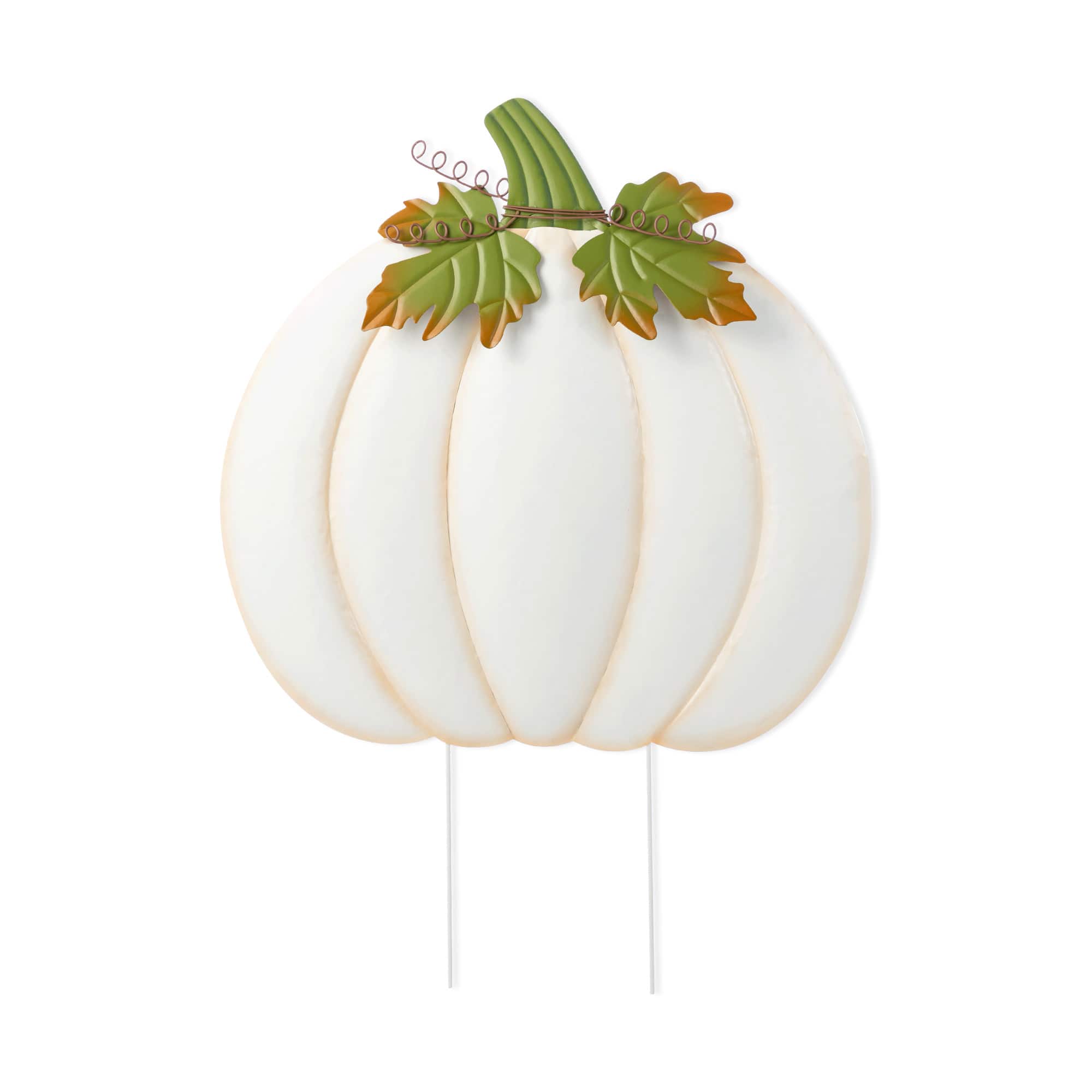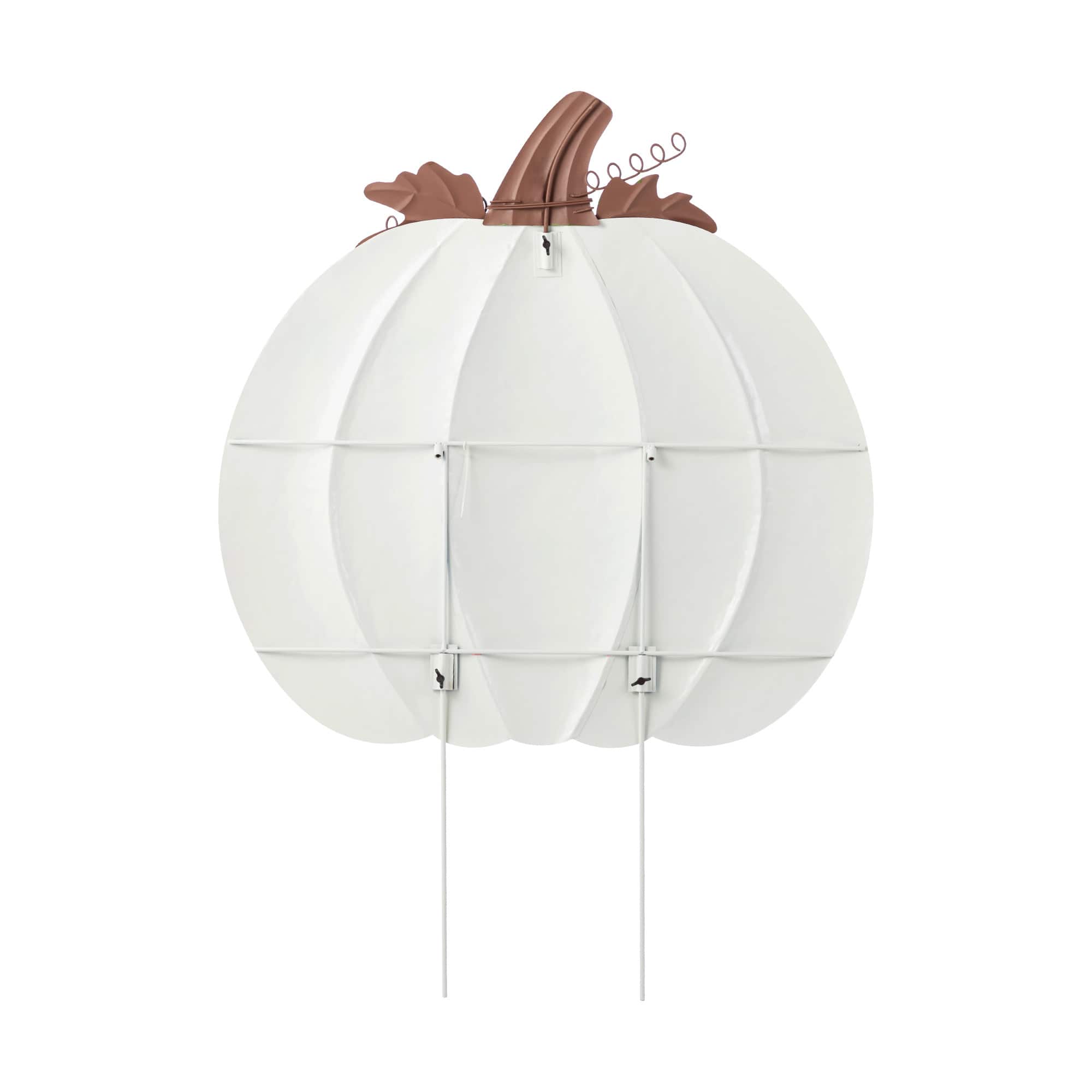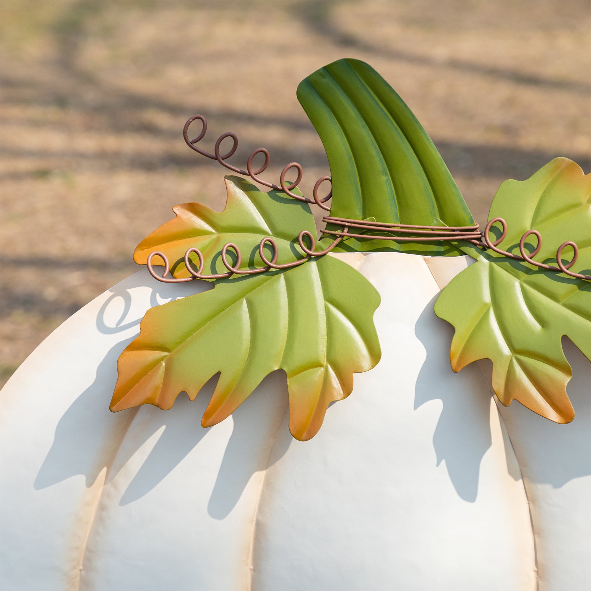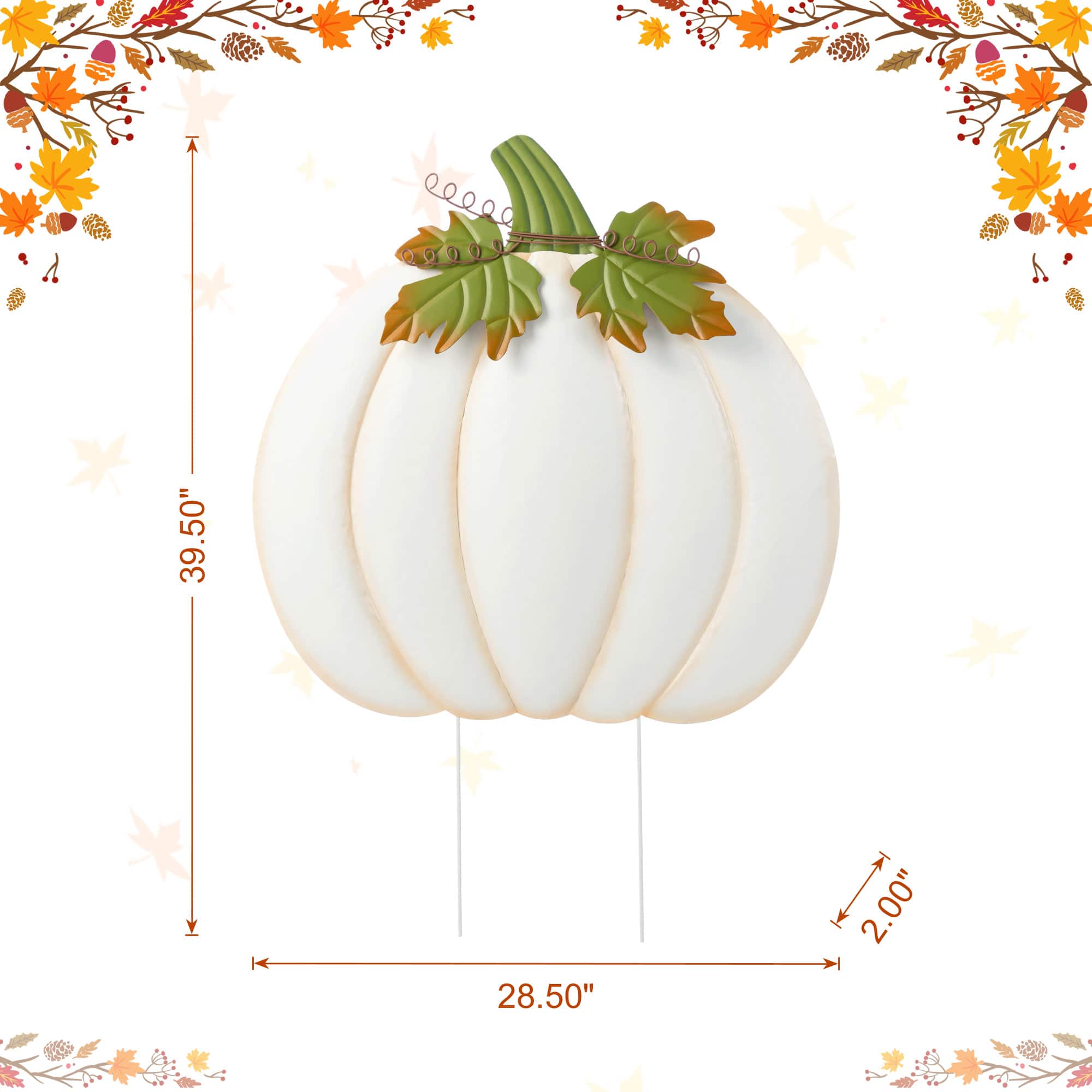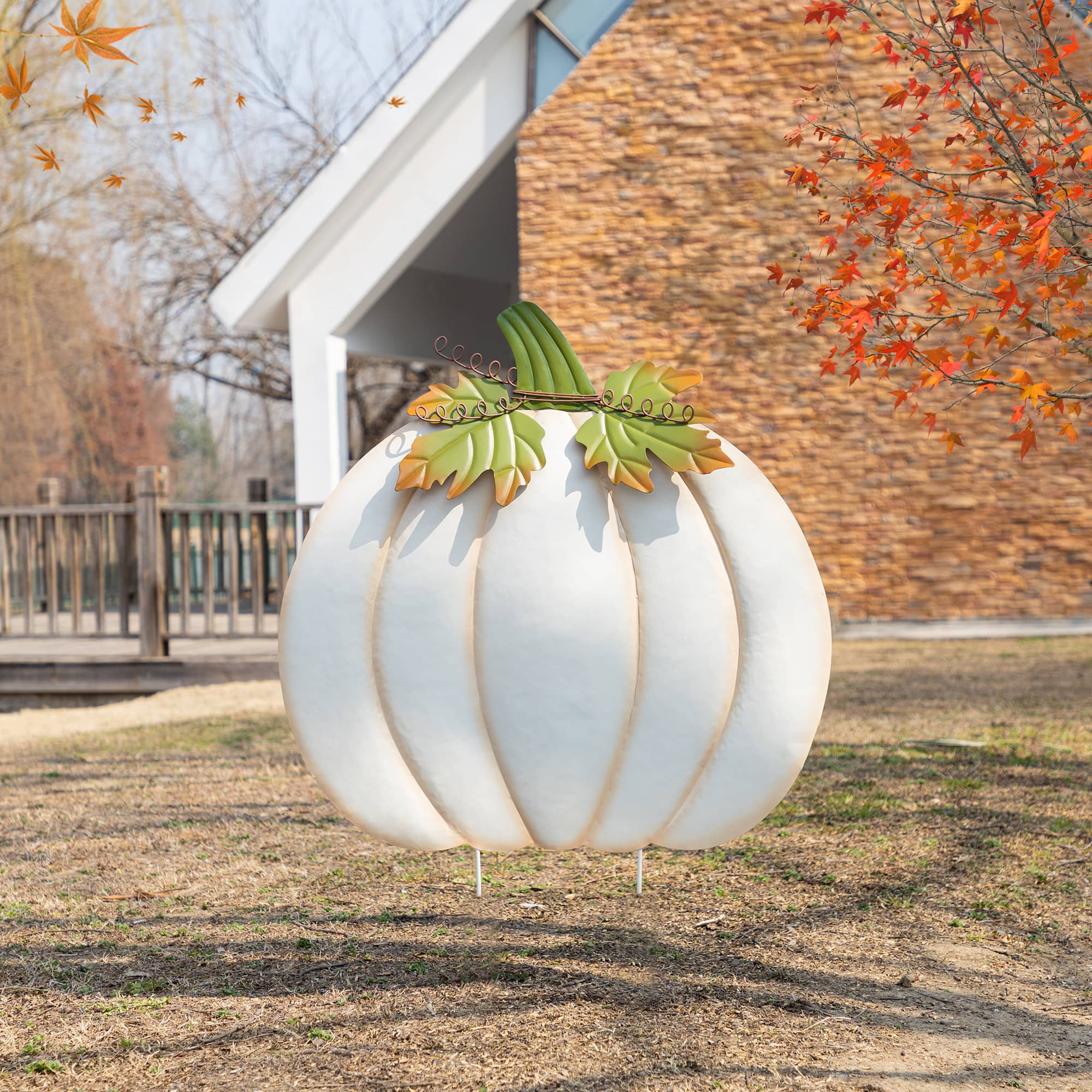 Glitzhome® 39.5" Fall Oversized Metal Ivory Pumpkin Yard Stake, Wall or Standing Decor