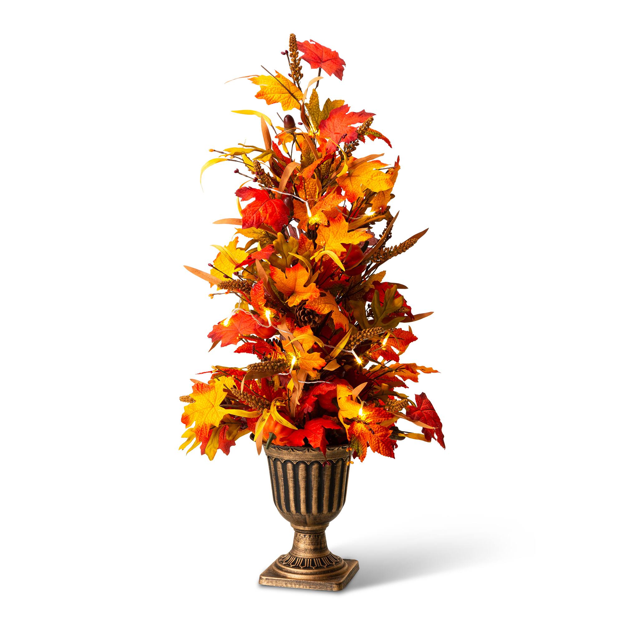 Glitzhome® 3ft. Fall Lighted Maple Leaves Tree in Urn with Timer