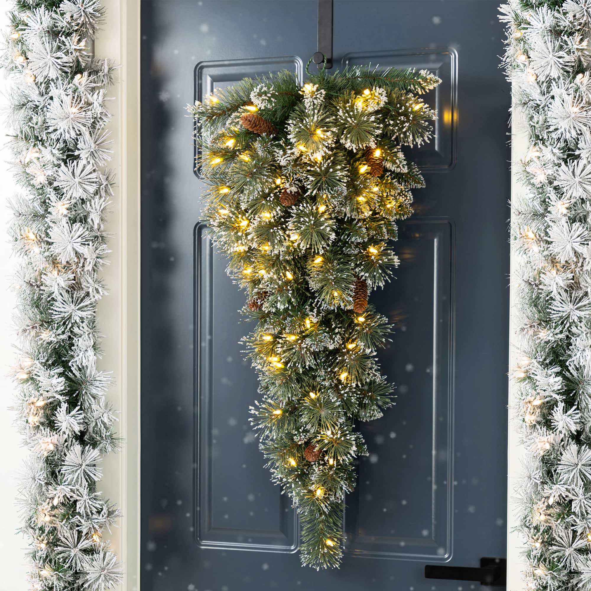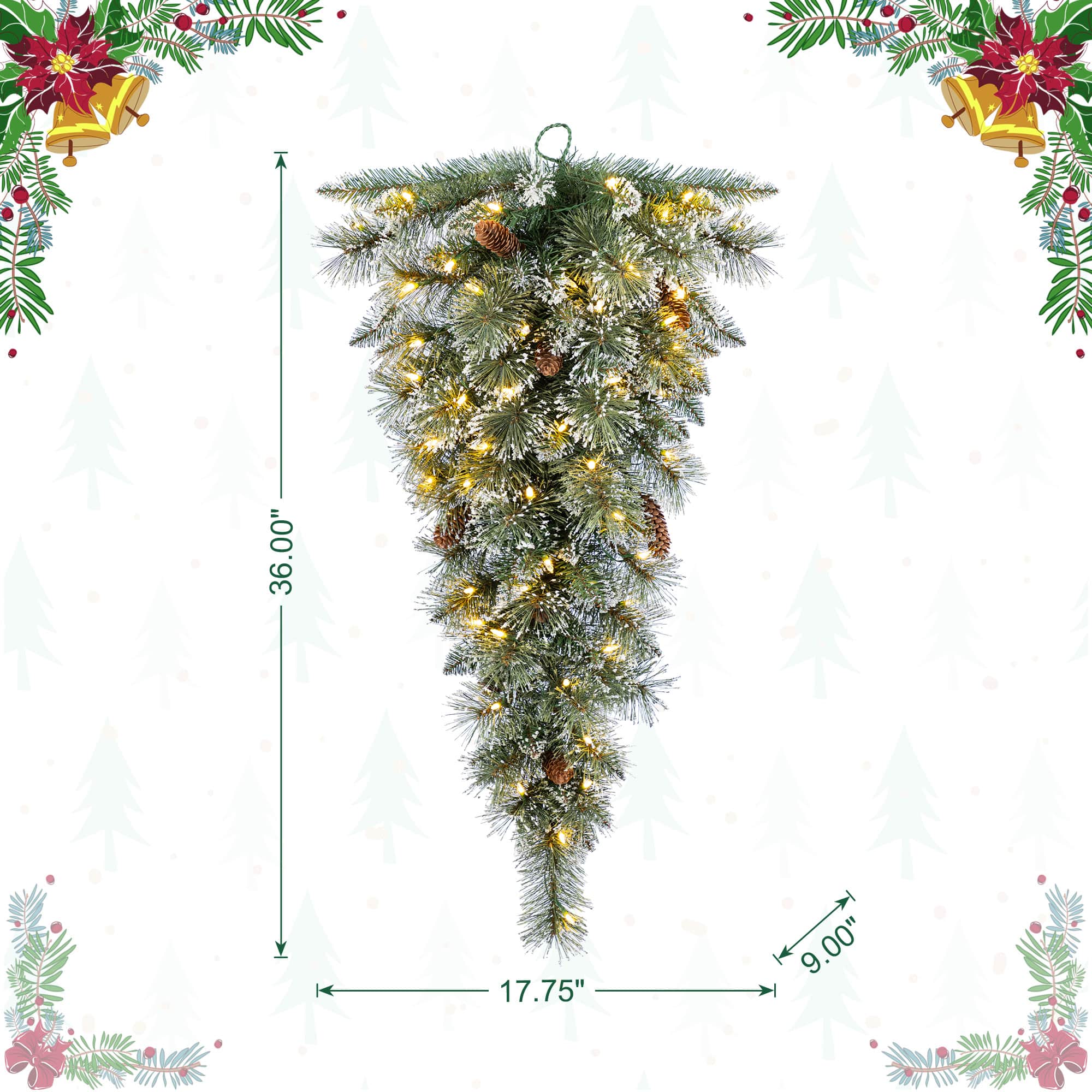 Glitzhome® 3ft Pre-Lit Frosted Greenery Pinecones Christmas Teardrop, LED Lights and Timer