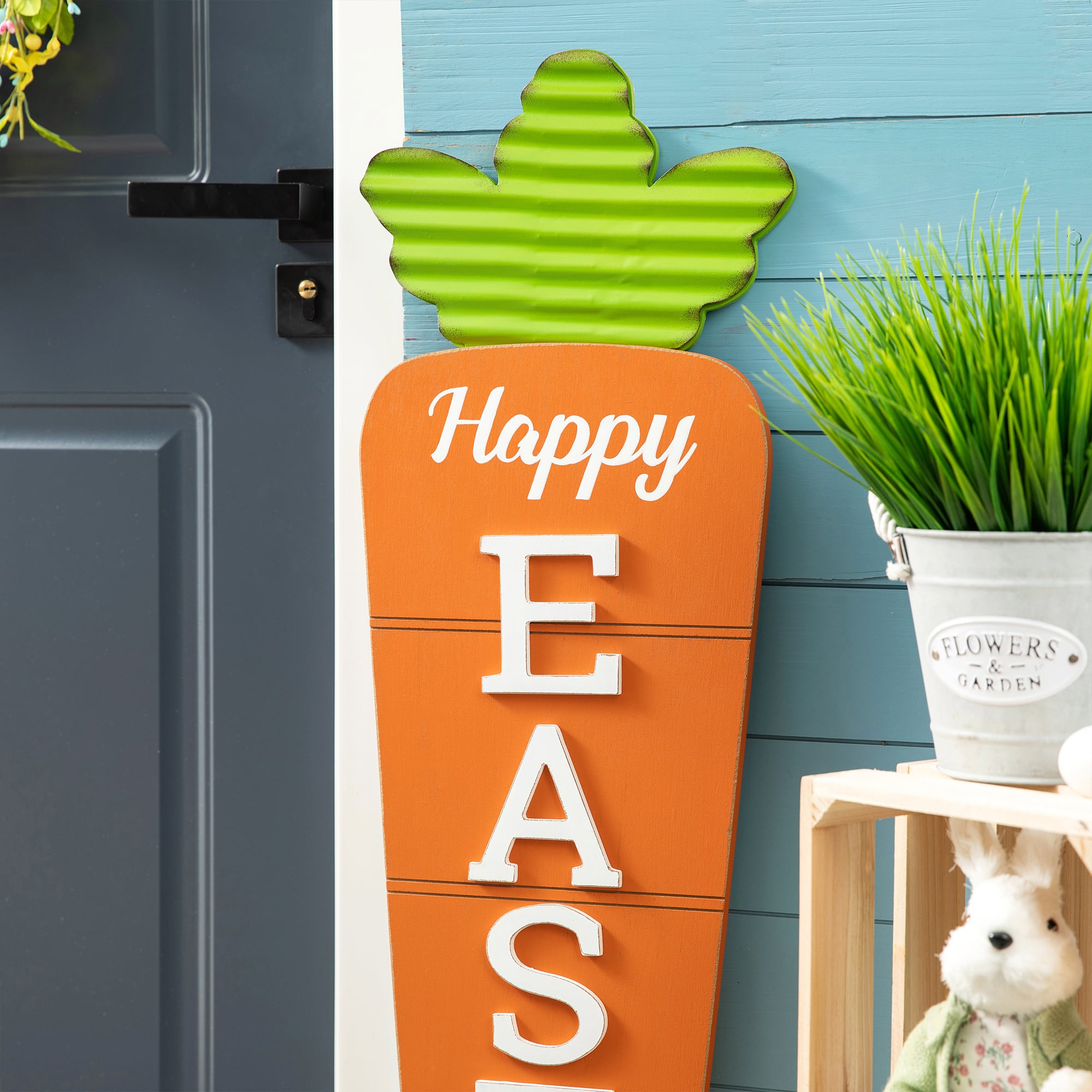 Glitzhome® 41.5" Easter Wooden and Metal Carrot Porch Decor