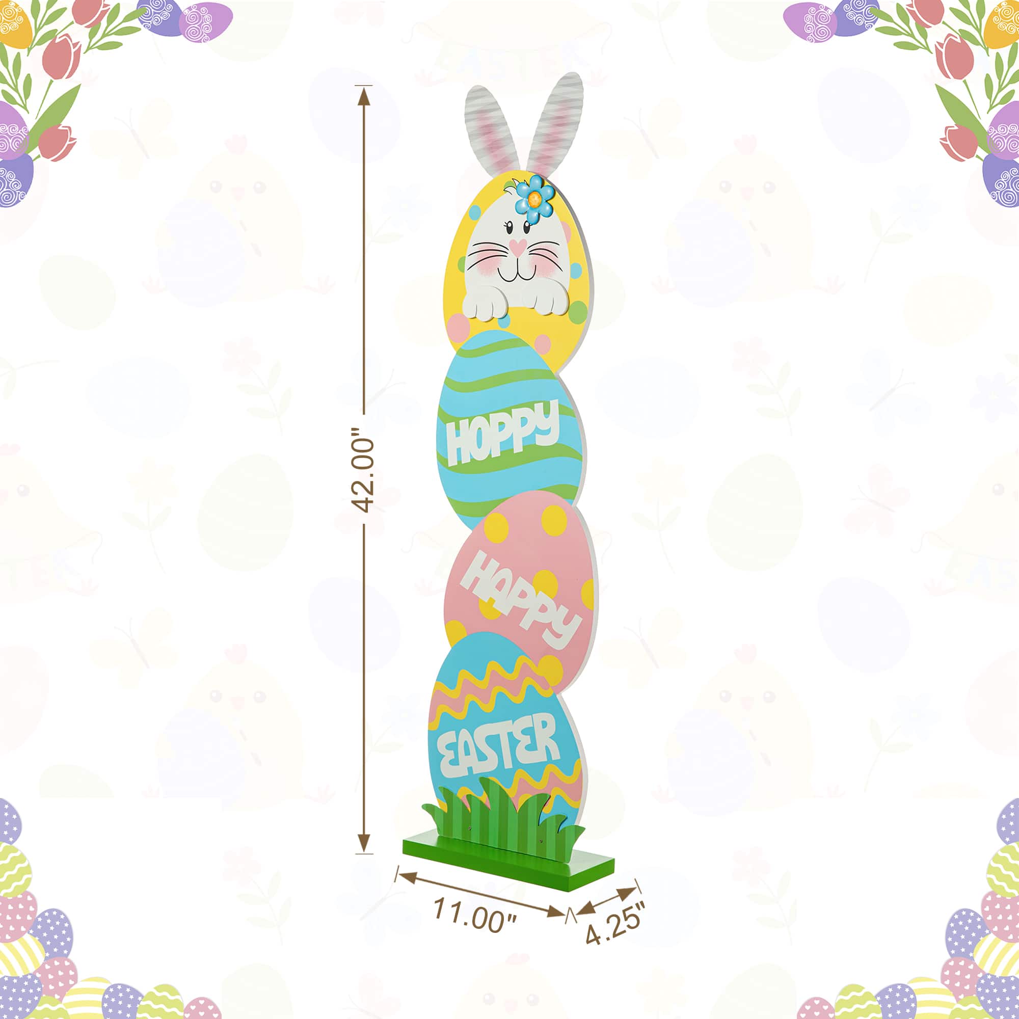 Glitzhome® 42" Easter Wooden Bunny & Eggs Porch Décor