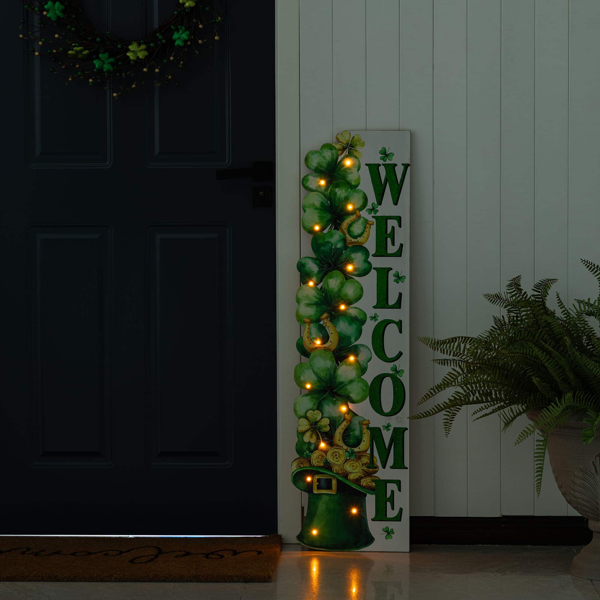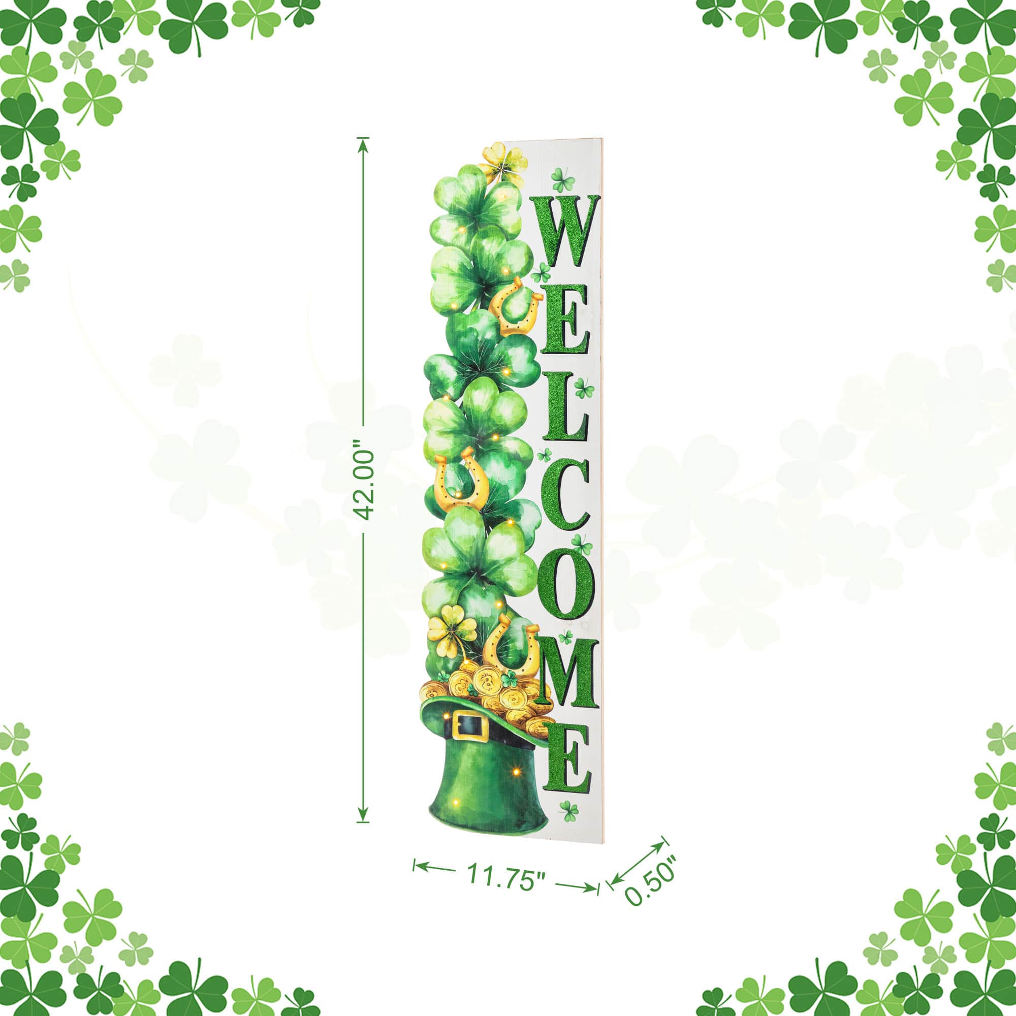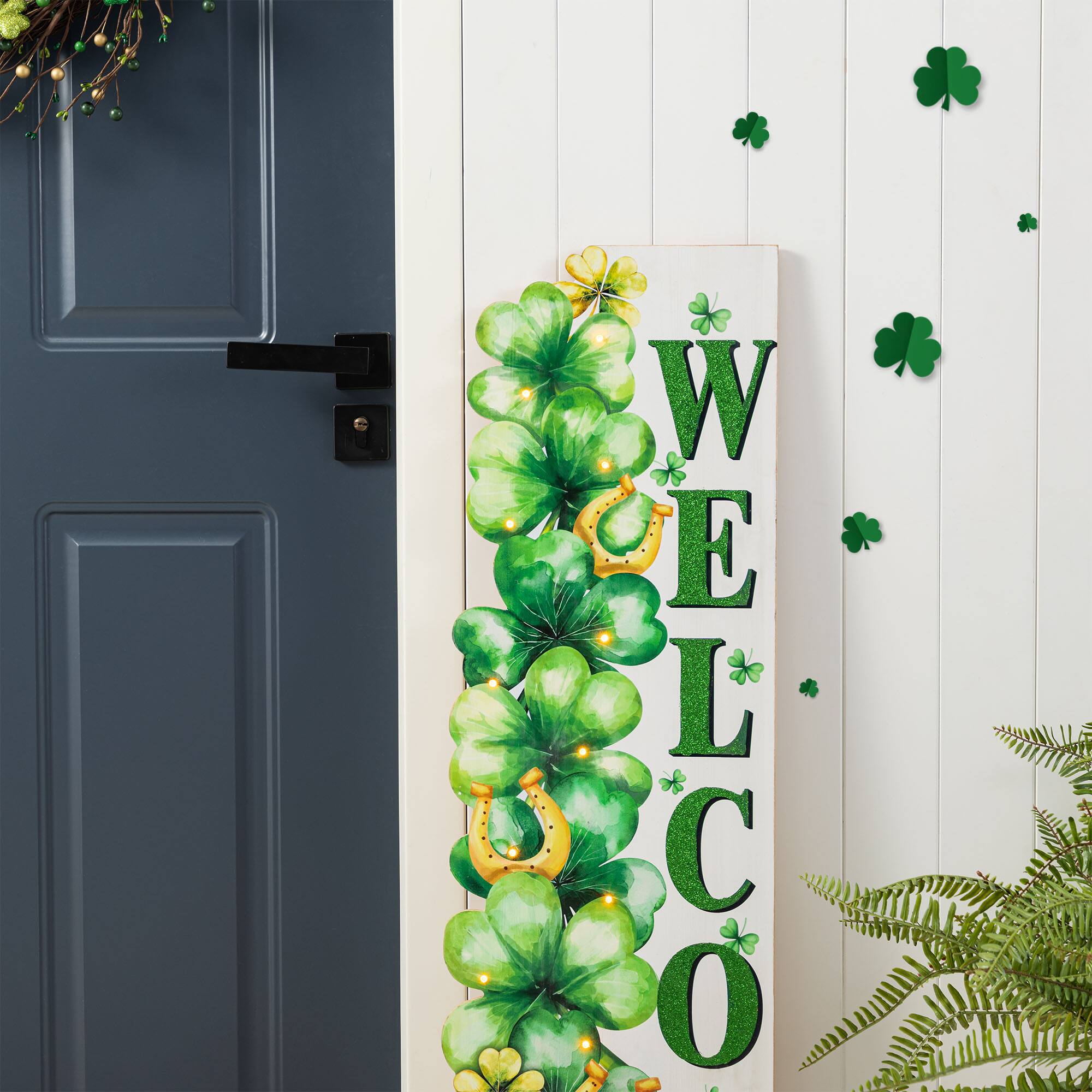 Glitzhome® 42" St. Patrick's Wooden Lighted Stacked Shamrock Porch Decor with Timer